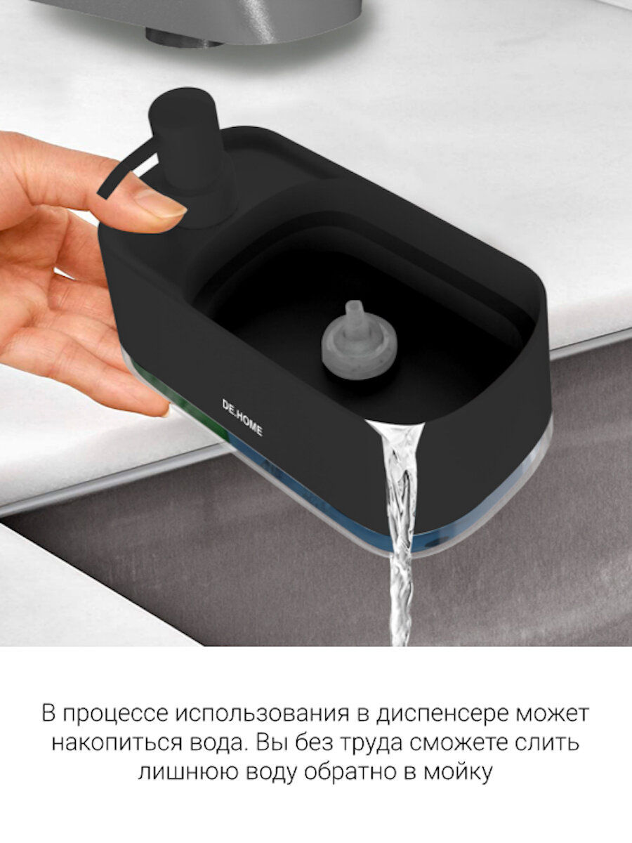 Купить DE.HOME Двойной диспенсер для моющего средства с губкой и дозатор для жидкого мыла, с губкой, черный