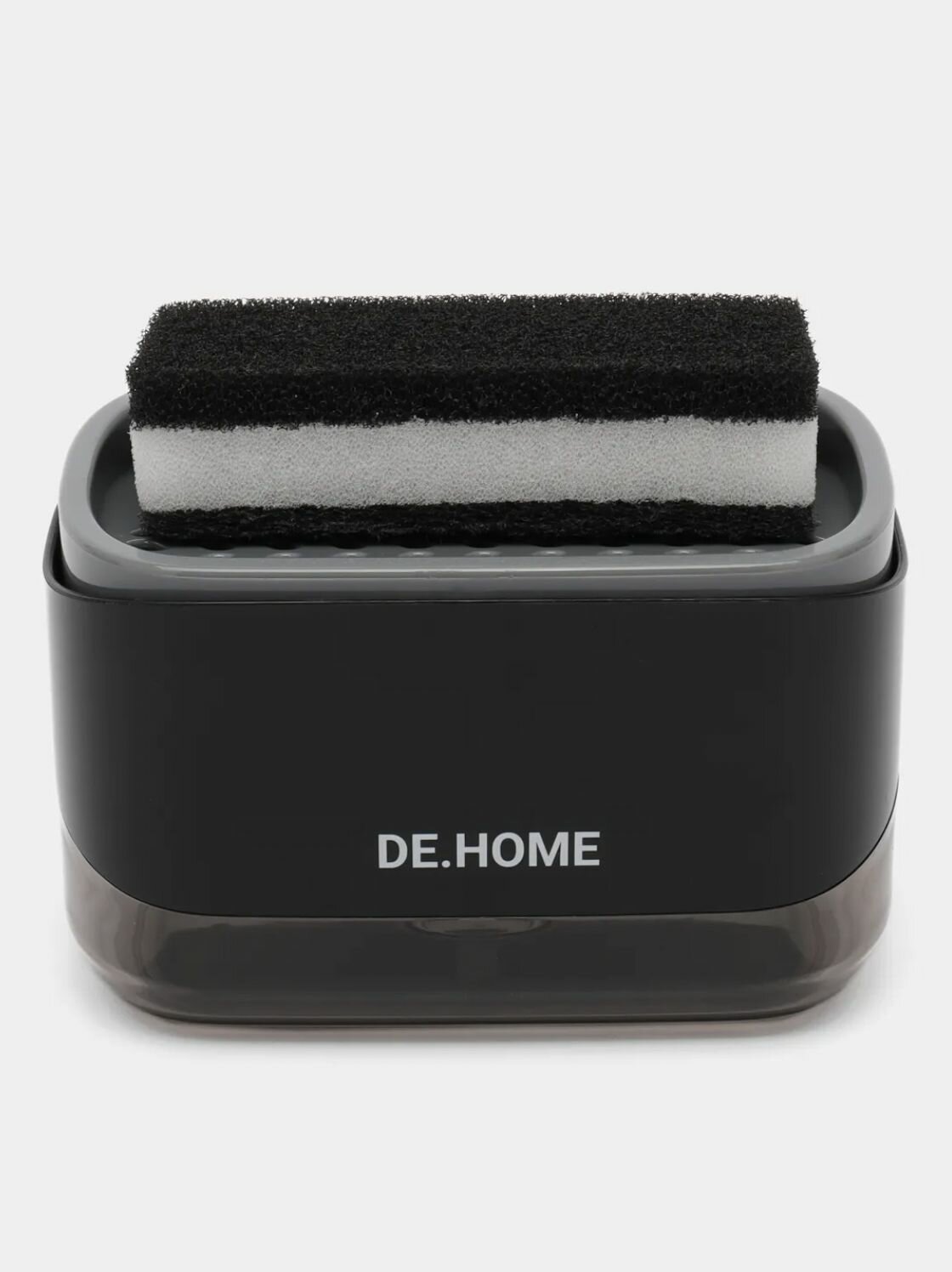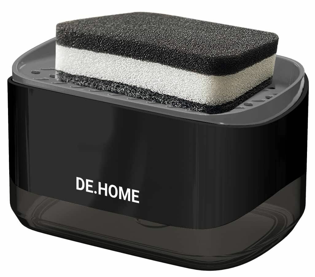 DE.HOME Диспенсер для моющего средства и дозатор для жидкого мыла 4 в 1, с губкой, черный