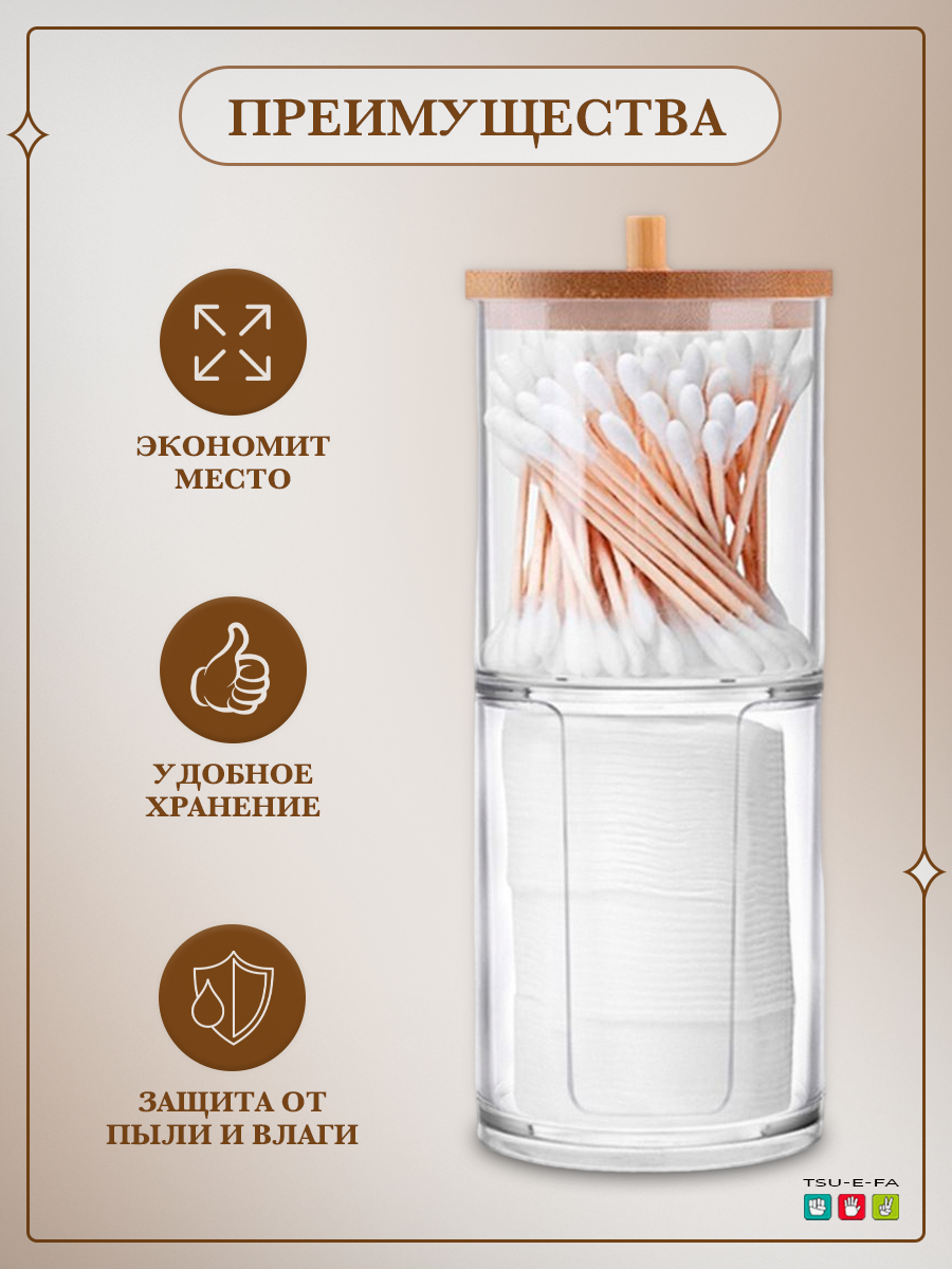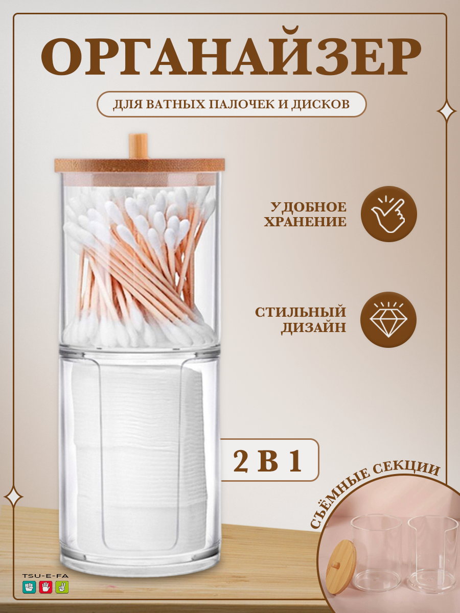 Органайзер для ватных дисков и палочек с крышками интересное: