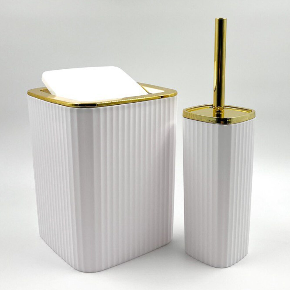 Купить Набор аксессуаров для ванной комнаты и туалета: стакан для зубных щеток, дозатор для мыла, ершик, мыльница, ведро; белый, 6 предметов
