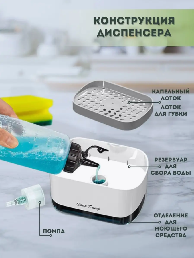 Диспенсер для моющего средства и мыла на кухню интересное: