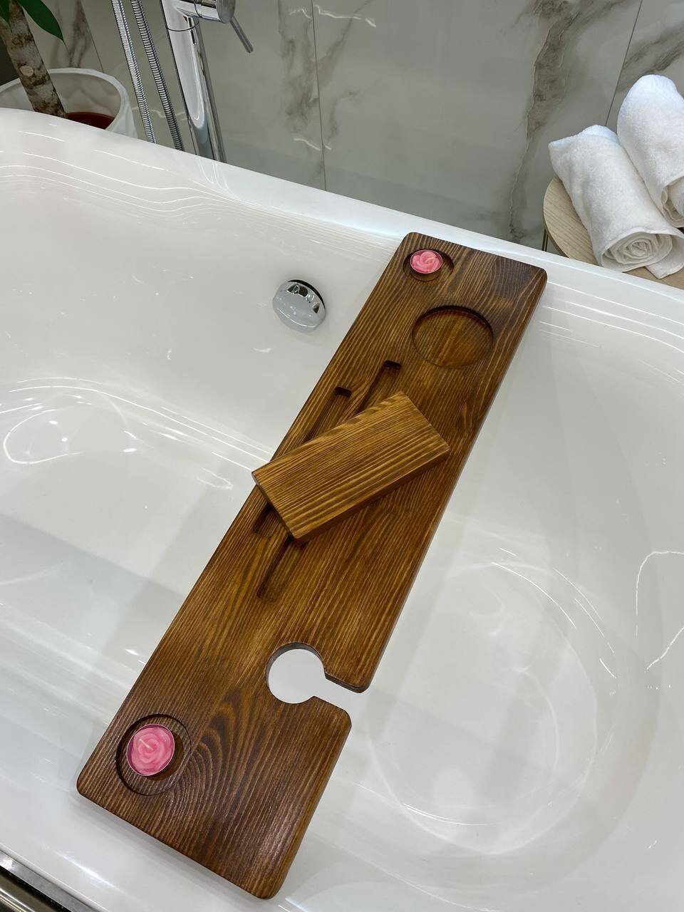 Полка для ванной / Полка для ванны / Столик для ванной деревянный / Подарок интересное: