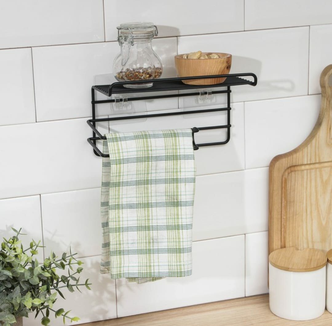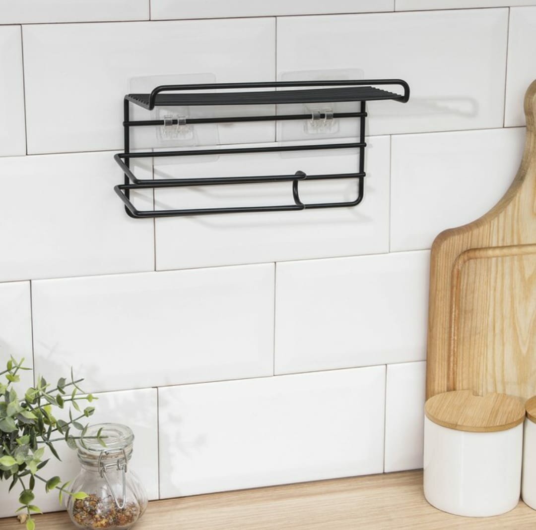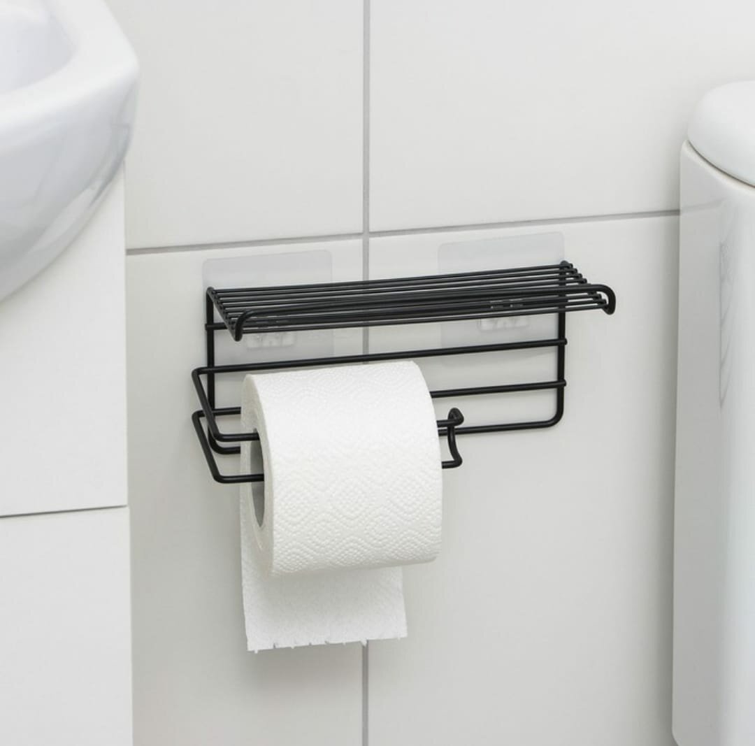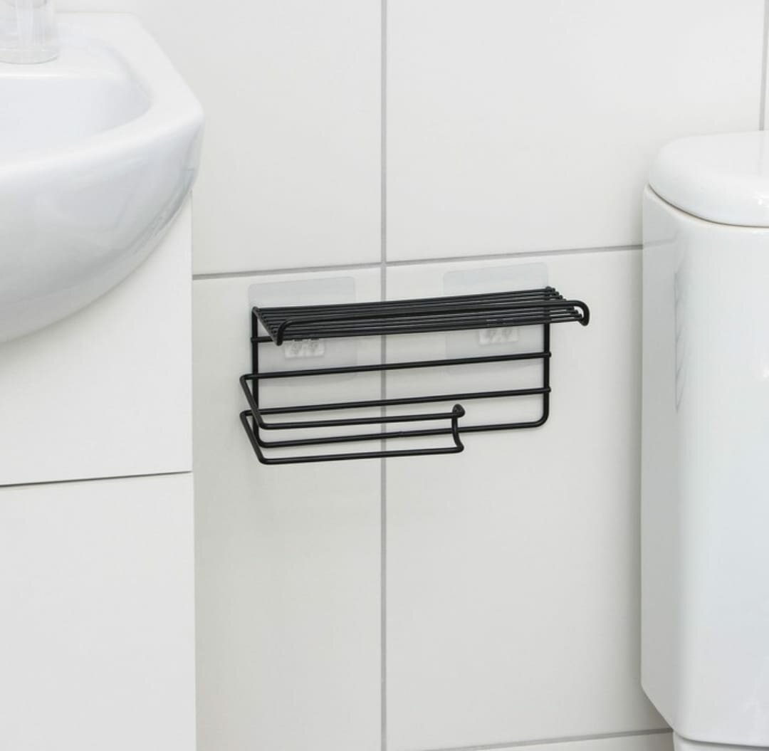 Купить Полка настенная металлическая черная матовая в ванную, органайзер для кухни и туалета, самоклеящаяся липучка 1 шт.
