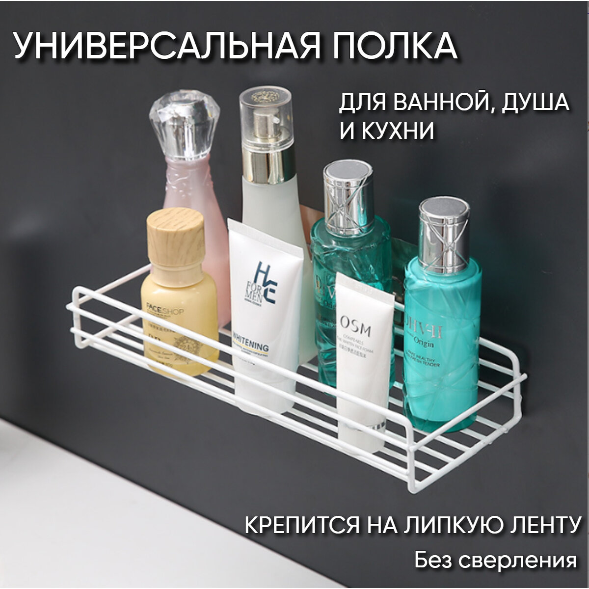 Купить Полка настенная металлическая белая матовая в ванную, органайзер, для хранения вещей самоклеящаяся липучка 1 шт.