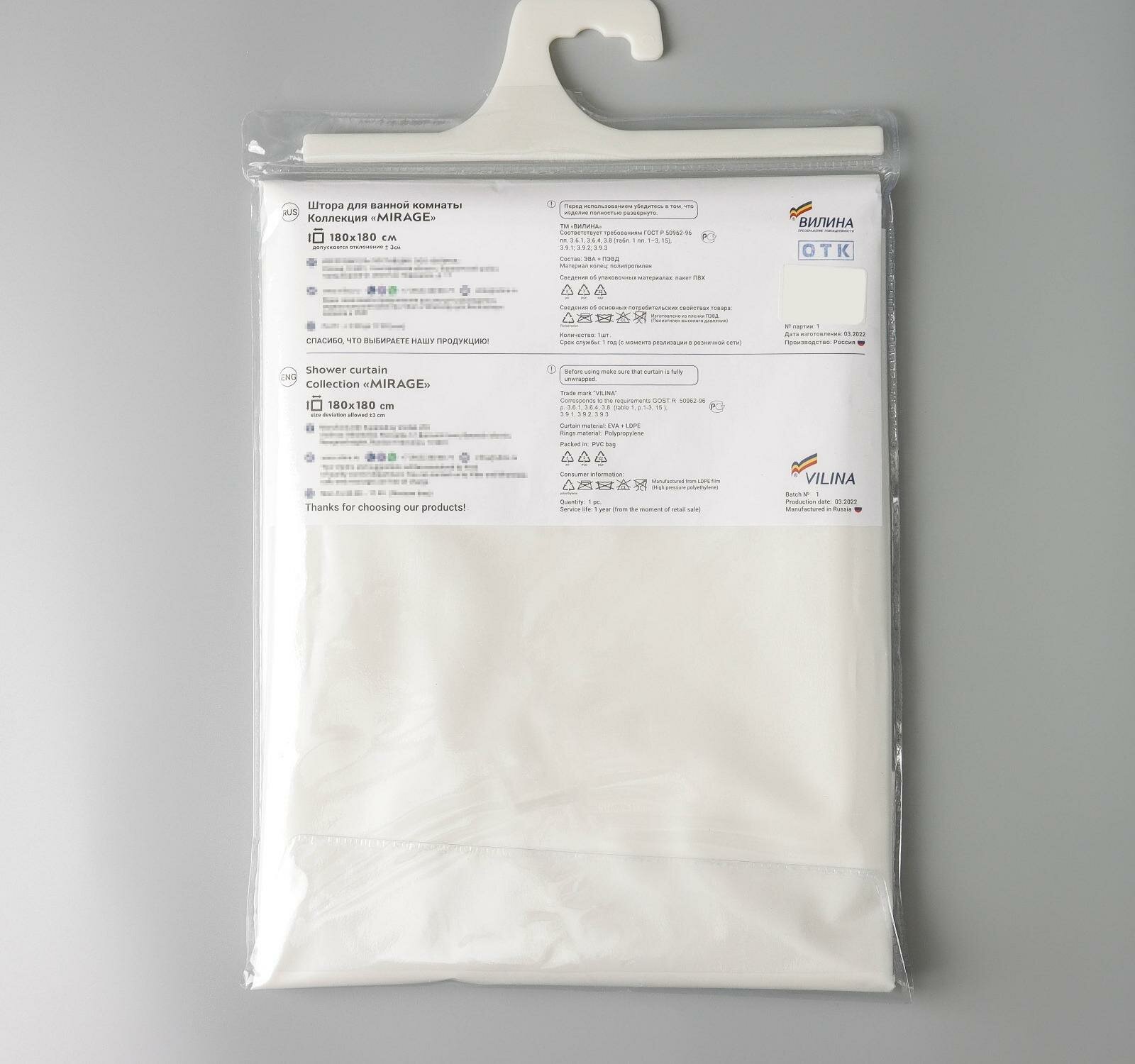 Купить Штора для ванной водонепроницаемая VILINA 180х180 см "MIRAGE для душа однотонная белая перламутровая с кольцами