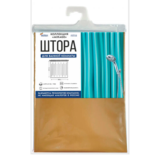 Штора для ванной комнаты ЭВА+пэвд 180х180 см MIRAGE 10 колец 7070-gold Вилина (арт. 831027)