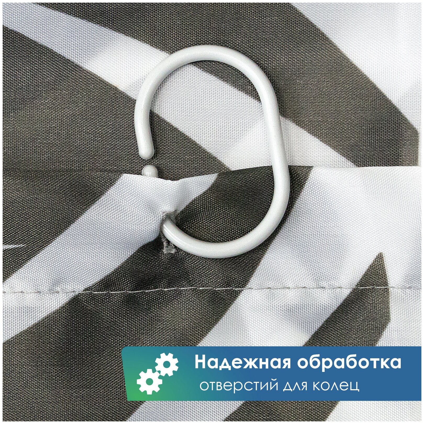 Штора для ванной комнаты VILINA тканевая с рисунком водоотталкивающая с кольцами 180х180см занавес в душевую Зебра серая