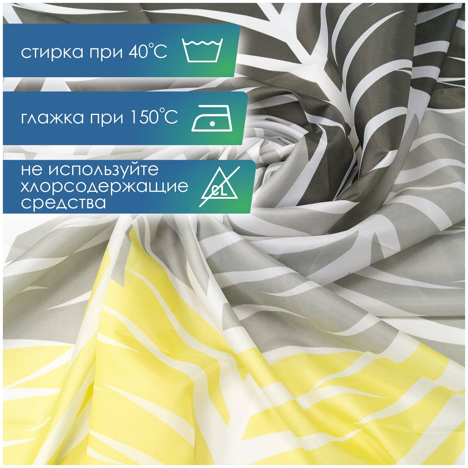 Купить Штора для ванной комнаты VILINA тканевая с рисунком водоотталкивающая с кольцами 180х180см занавес в душевую Пальмовые листья
