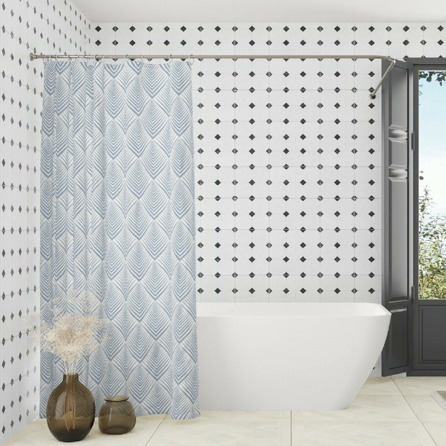 Штора для ванной комнаты VILINA тканевая с рисунком водоотталкивающая с кольцами 180х180см занавес в душевую Решетка серая