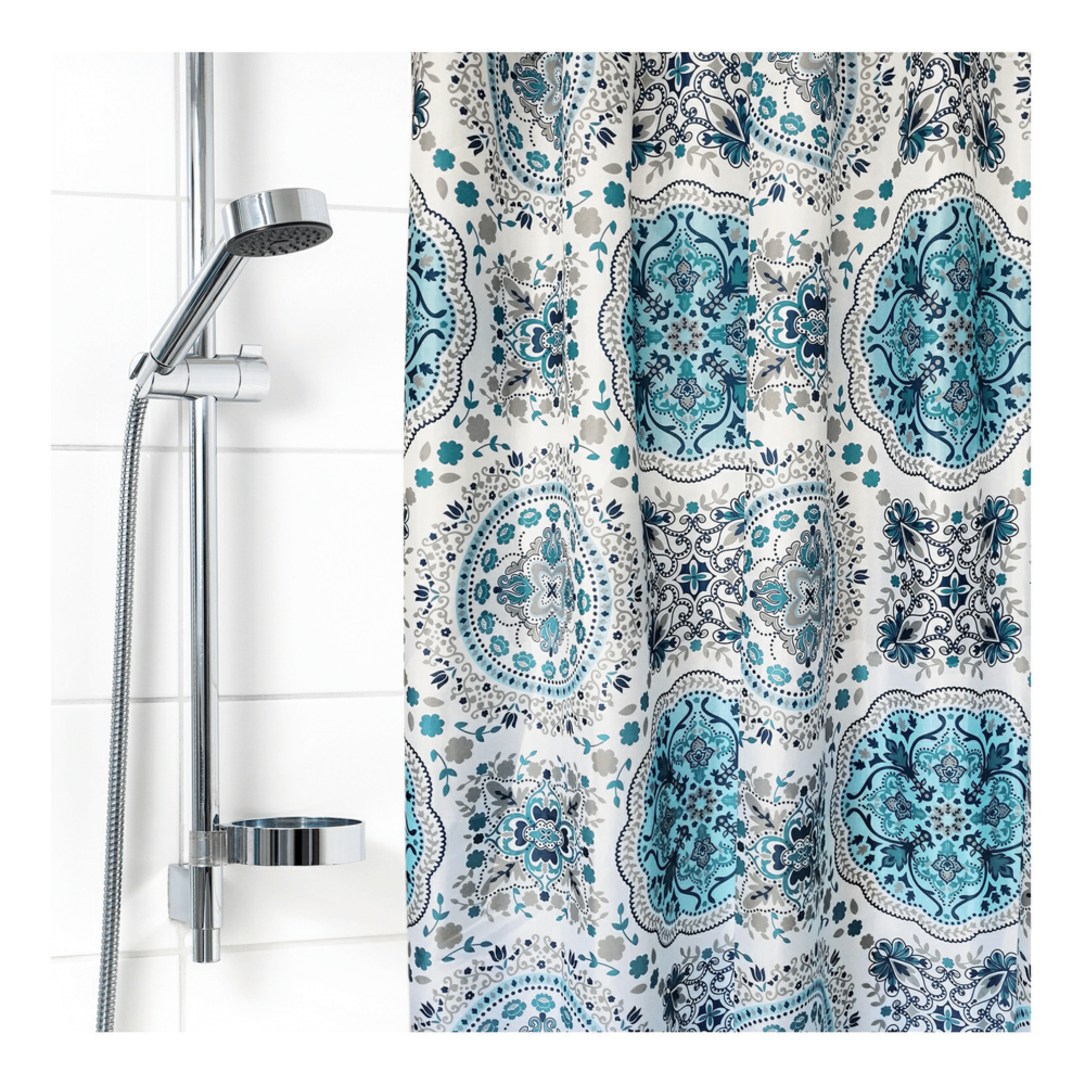 Штора для ванной комнаты VILINA тканевая с рисунком водоотталкивающая с кольцами 180х180см занавес в душевую Восточный орнамент