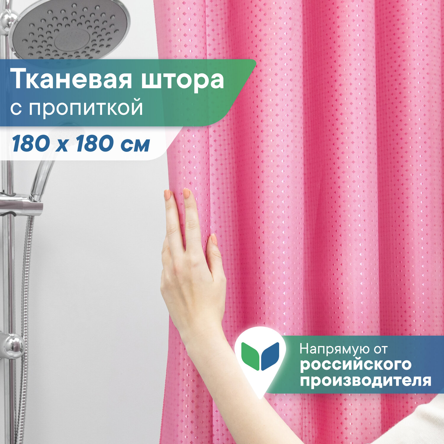 Купить Штора для ванной комнаты и душа VILINA тканевая занавеска 180х180 водоотталкивающая однотонная розовая