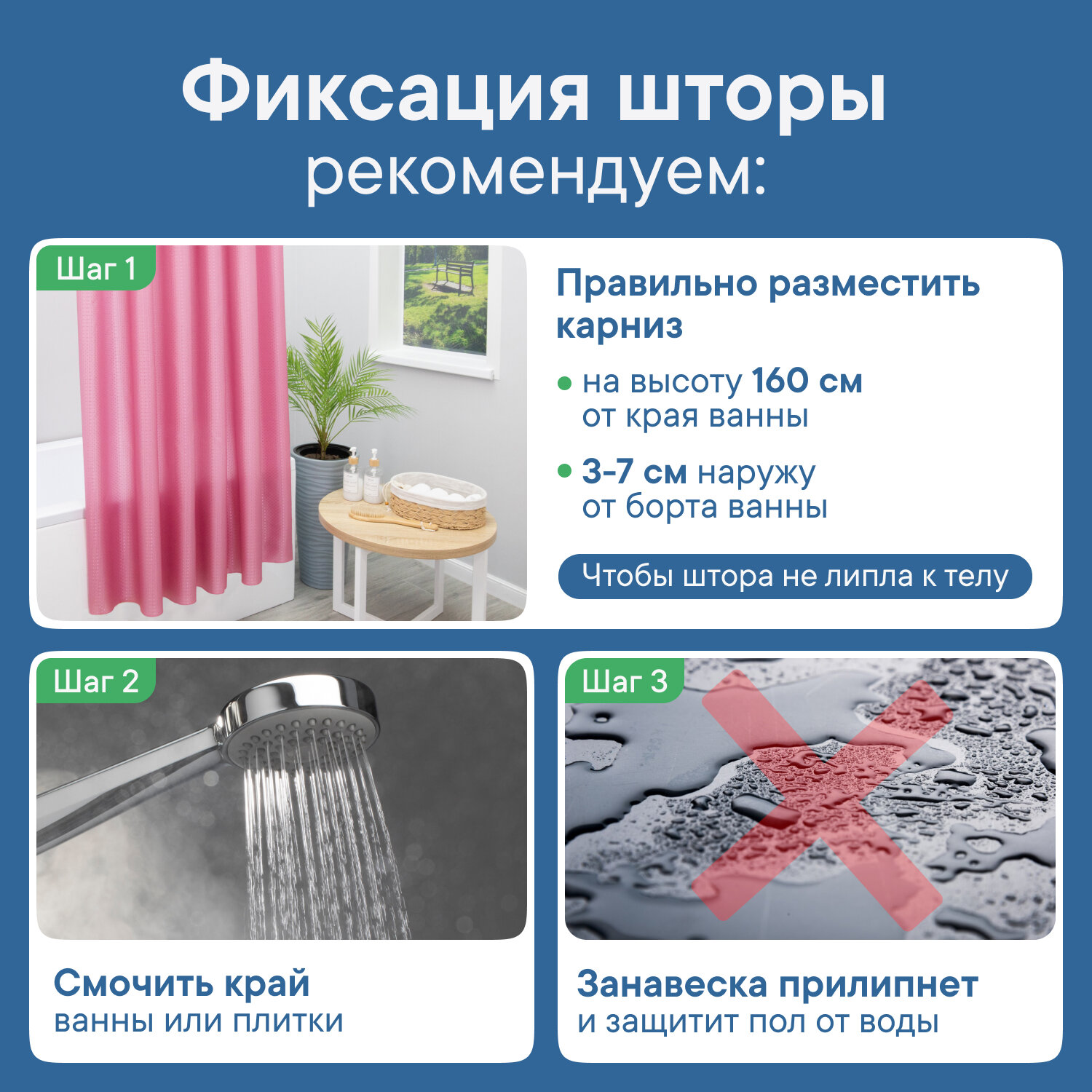 | Материал шторы | EVA / PEVA / полиэстер / полиэтилен |
