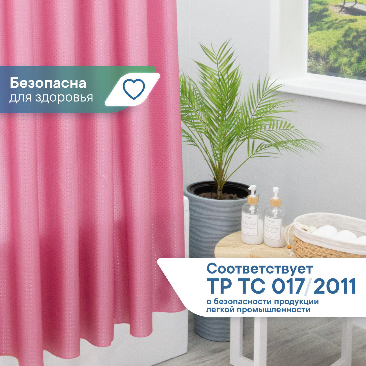 СохранитьШтора для ванной комнаты и душа VILINA тканевая занавеска 180х180 водоотталкивающая однотонная розовая интересное: