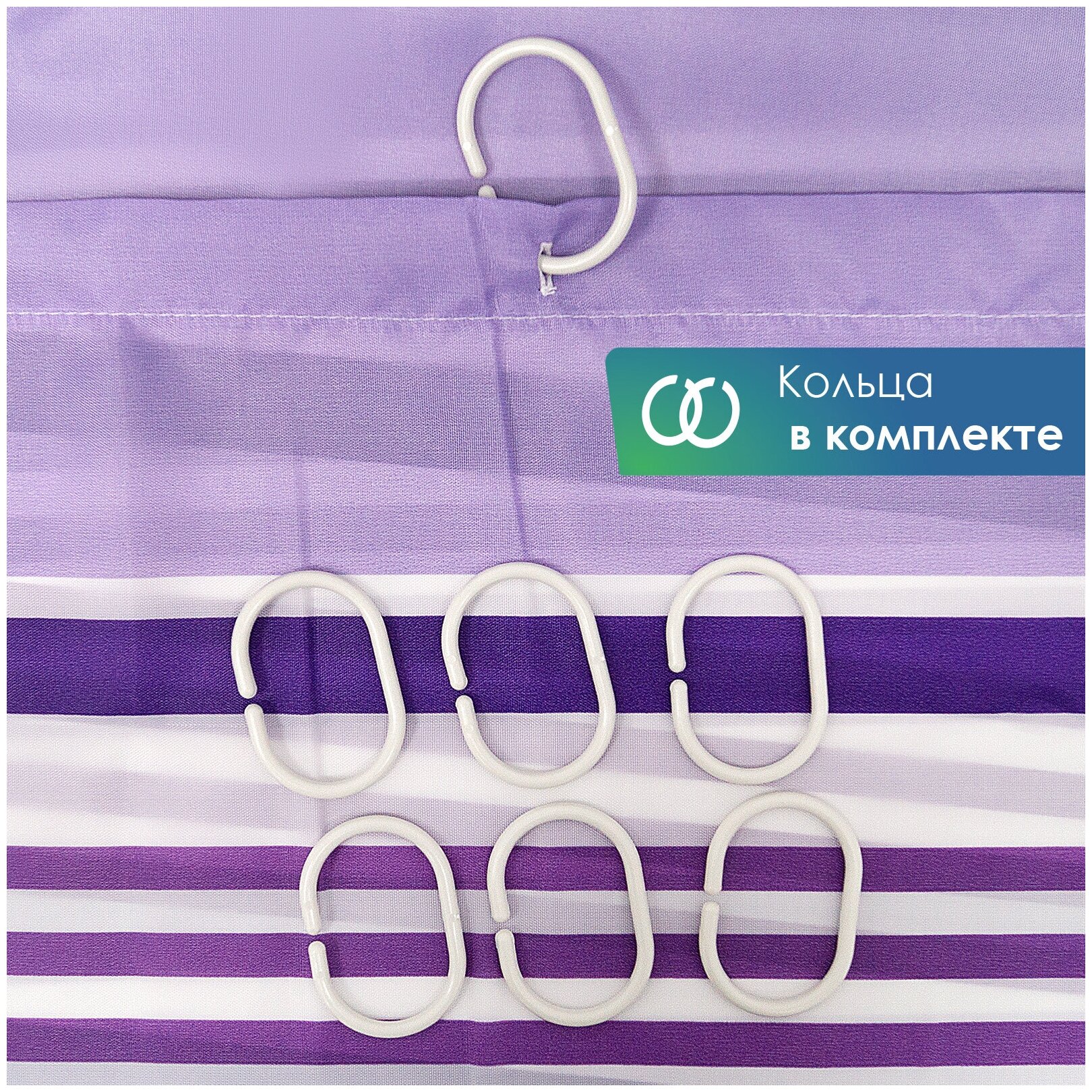 Купить Штора для ванной комнаты VILINA тканевая с рисунком водоотталкивающая с кольцами 180х180см занавес в душевую Лиловые полосы