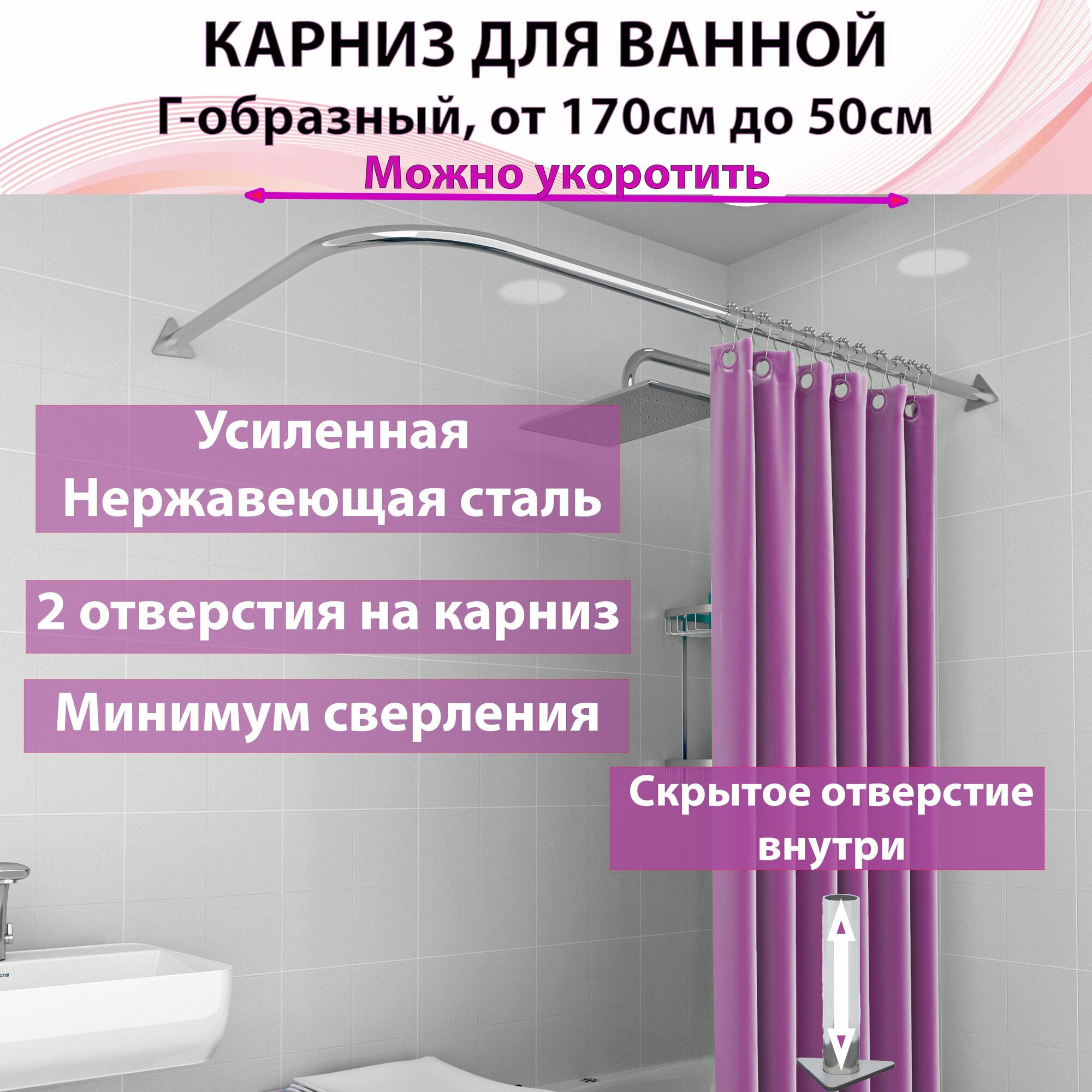 Карниз для ванны угловой г-образный Составной, Любой размер от 170 x 50 До 100 x 50 Укорачивается, из нержавеющей стали интересное: