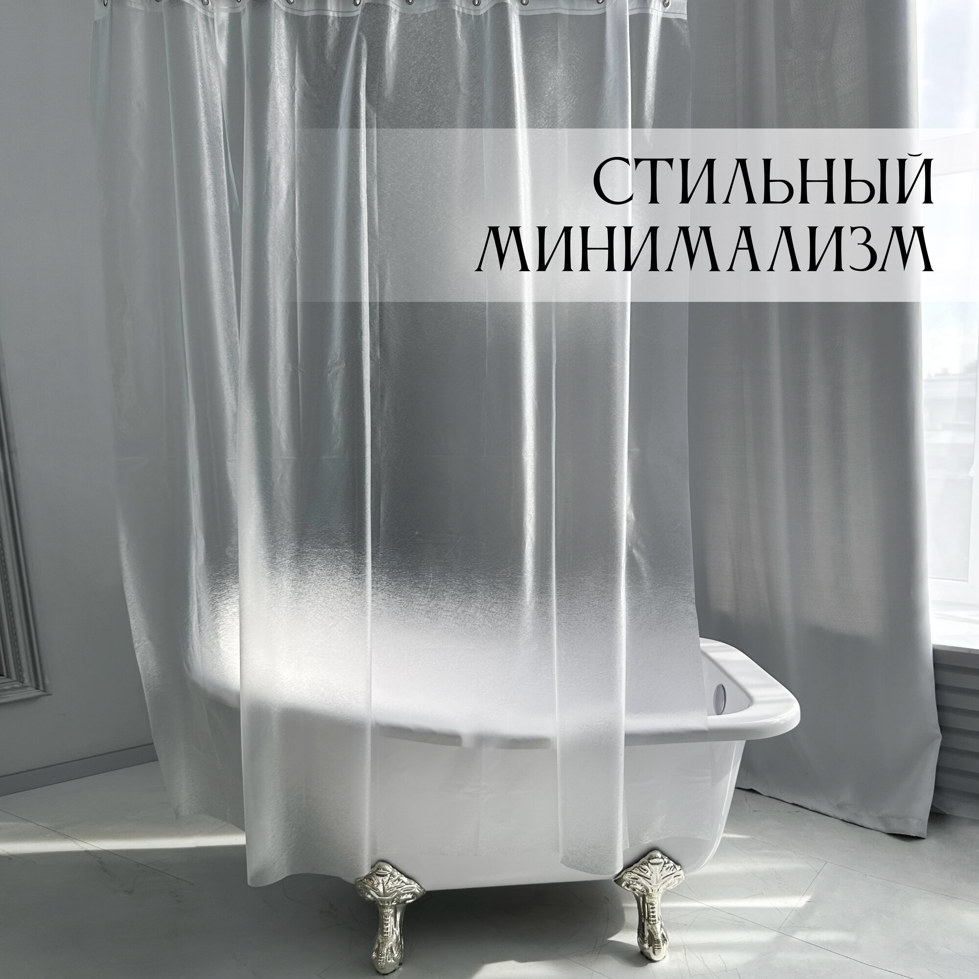 Штора для ванной, занавеска душевая водонепроницаемая, матовая, прозрачная 180х180 с кольцами интересное: