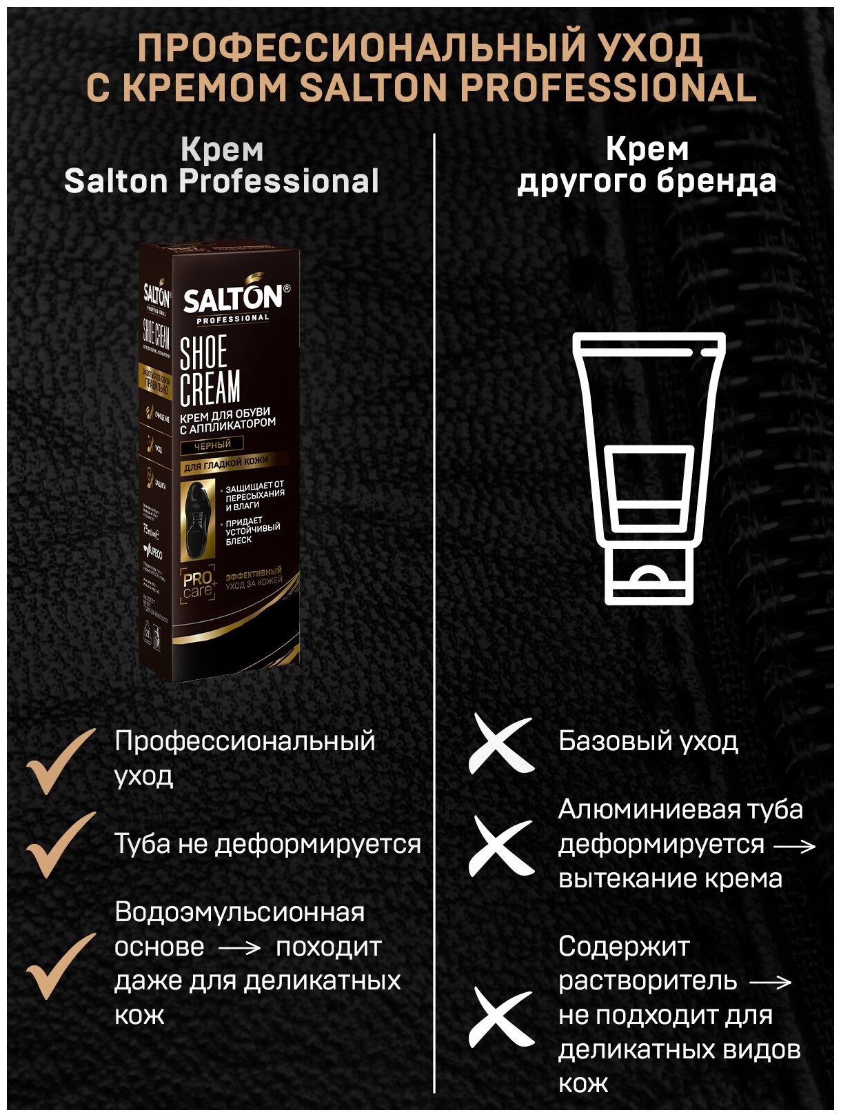 Крем для обуви в тубе Salton Professional черный, 75 мл, 1 шт интересное: