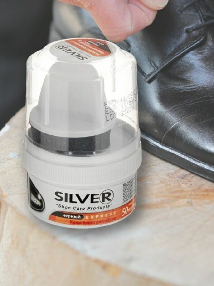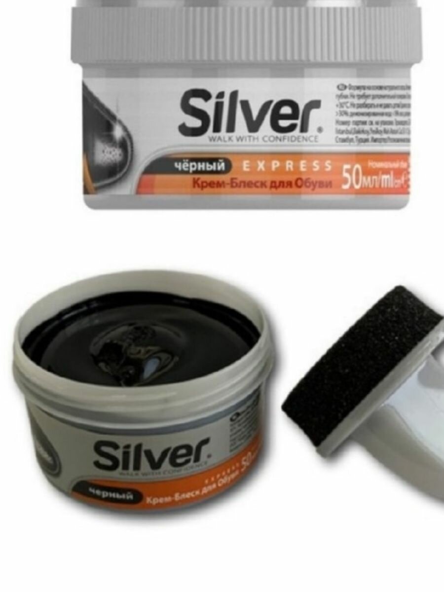 Silver Express Крем-блеск для обуви в банке с губкой 50 мл Черный интересное: