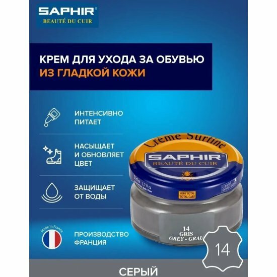Крем Saphir Creme Surfine для обуви из гладкой кожи 50 мл, цвет 14 серый
