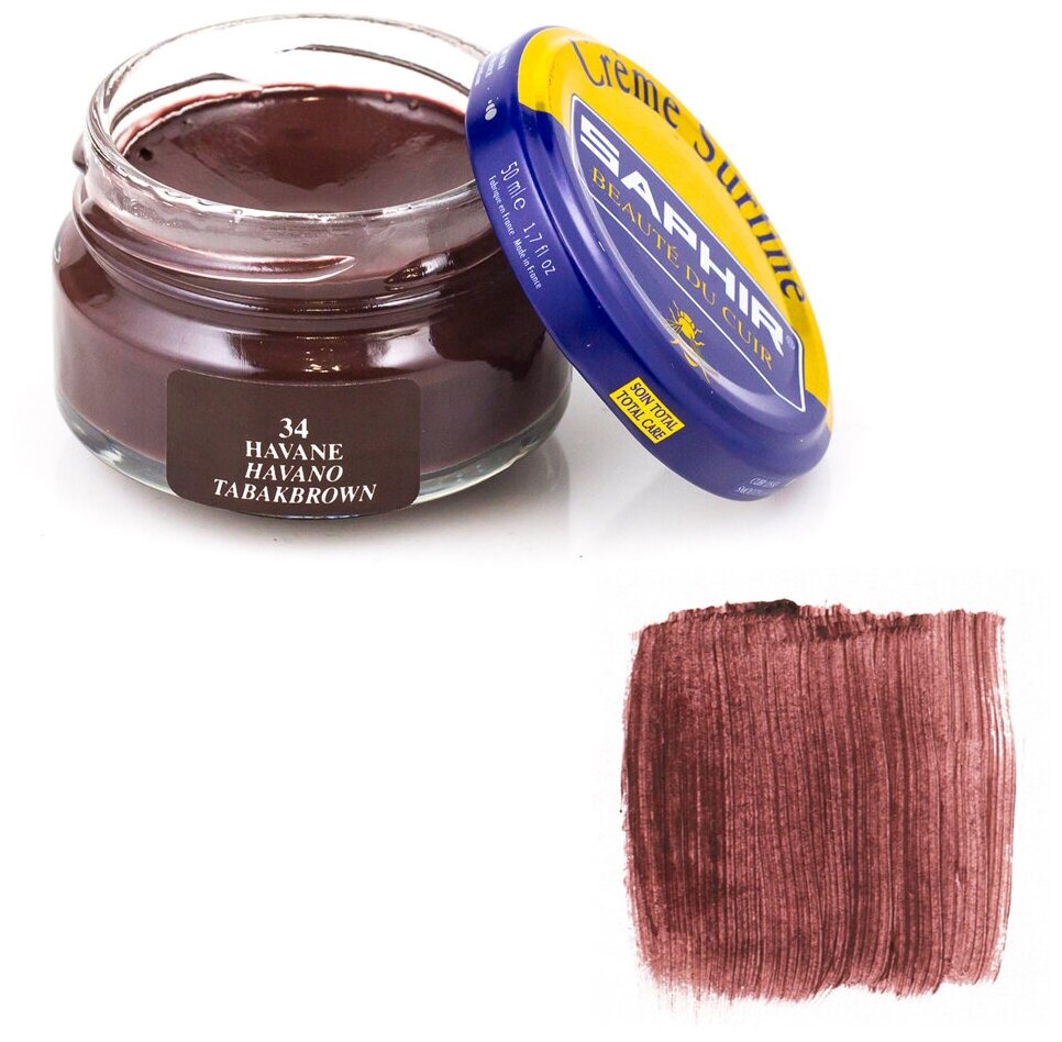 Крем Saphir Creme Surfine для обуви из гладкой кожи 50 мл, цвет 34 гавана (havane)
