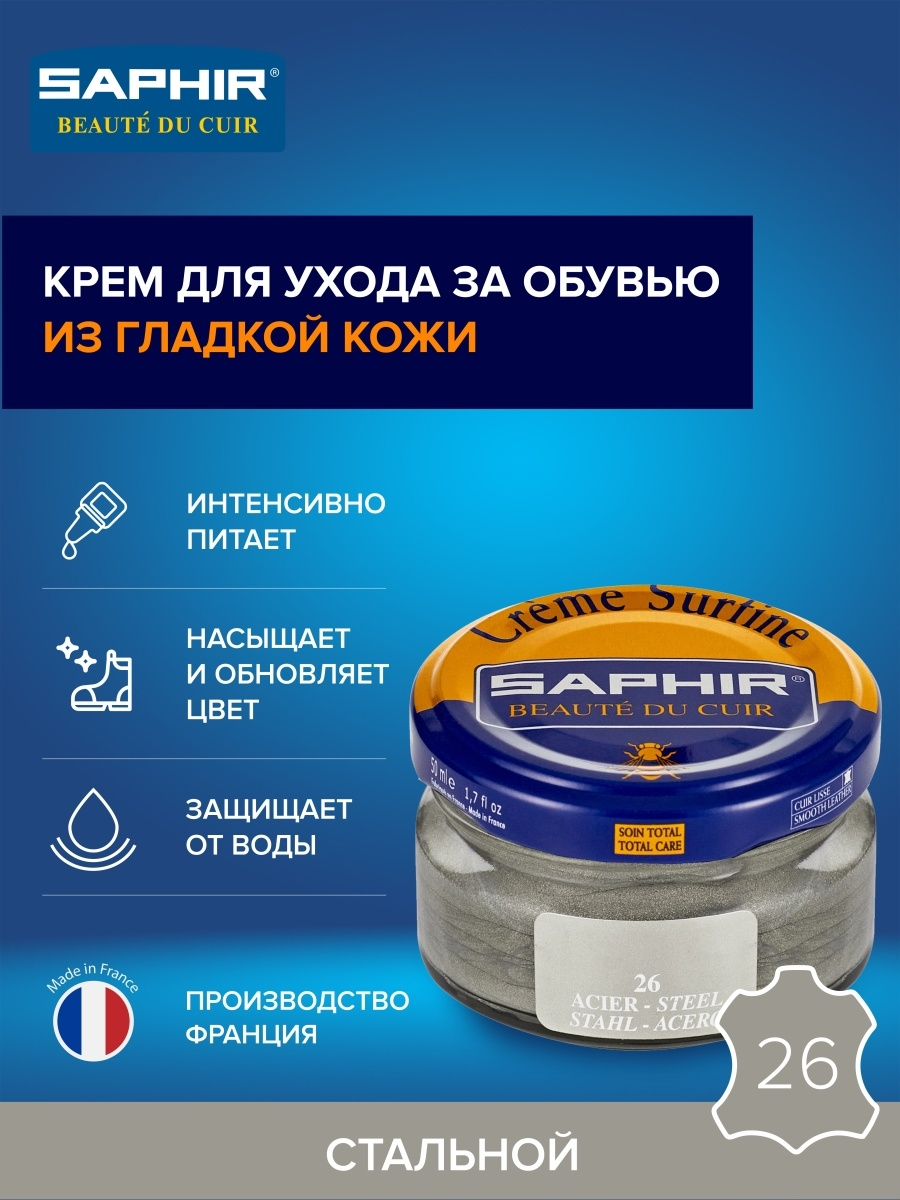 Крем Saphir Creme Surfine для обуви из гладкой кожи 50 мл, цвет 26 стальной