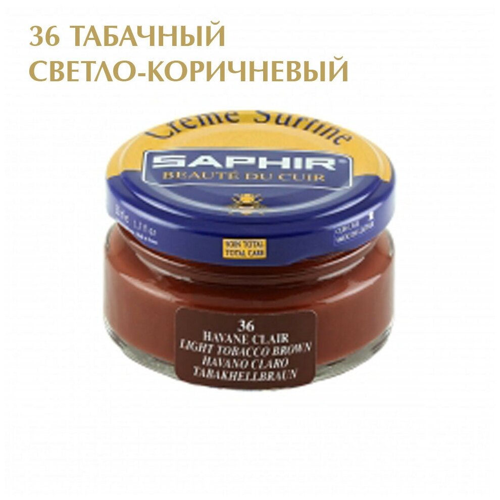Крем банка для гладкой кожи Creme Surfine SAPHIR, цветной, банка стекло, 50 мл. (35 табачный средне-коричневый)