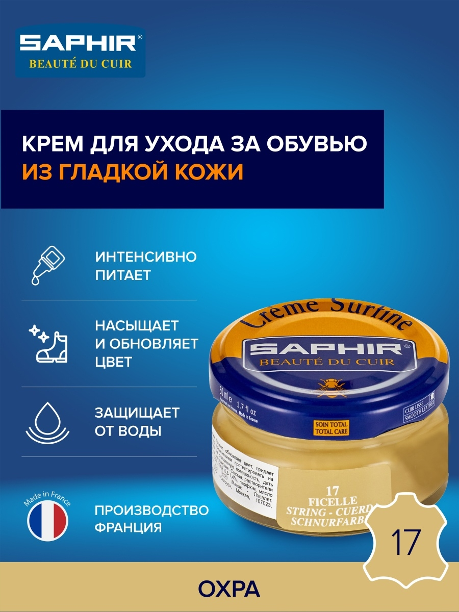 Крем Saphir Creme Surfine для обуви из гладкой кожи 50 мл, цвет 17 охра