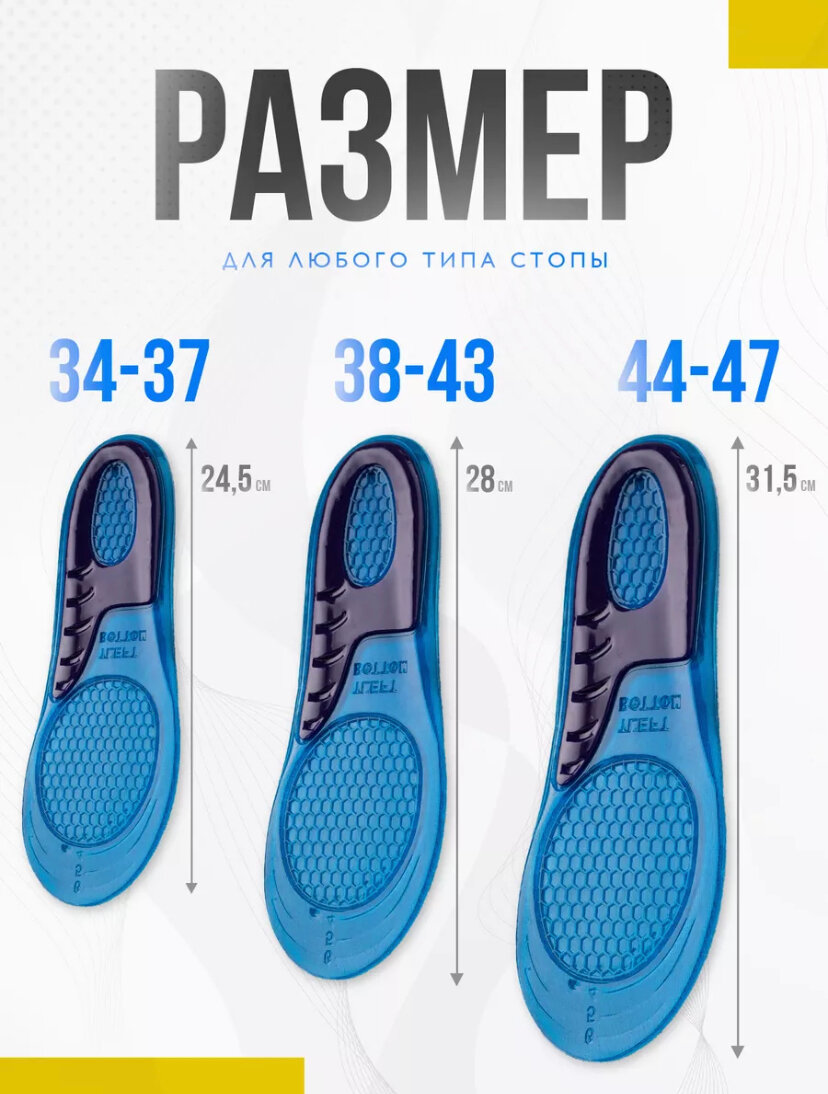 Стельки гелевые для обуви, спортивные, мужские и женские (размер 41 - 46) интересное: