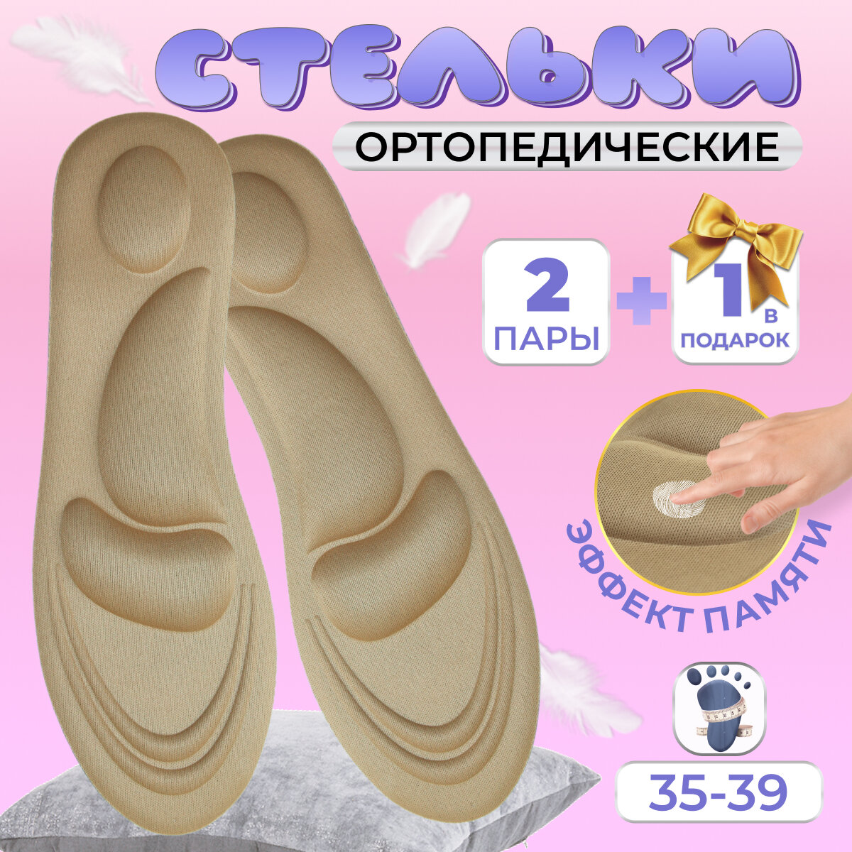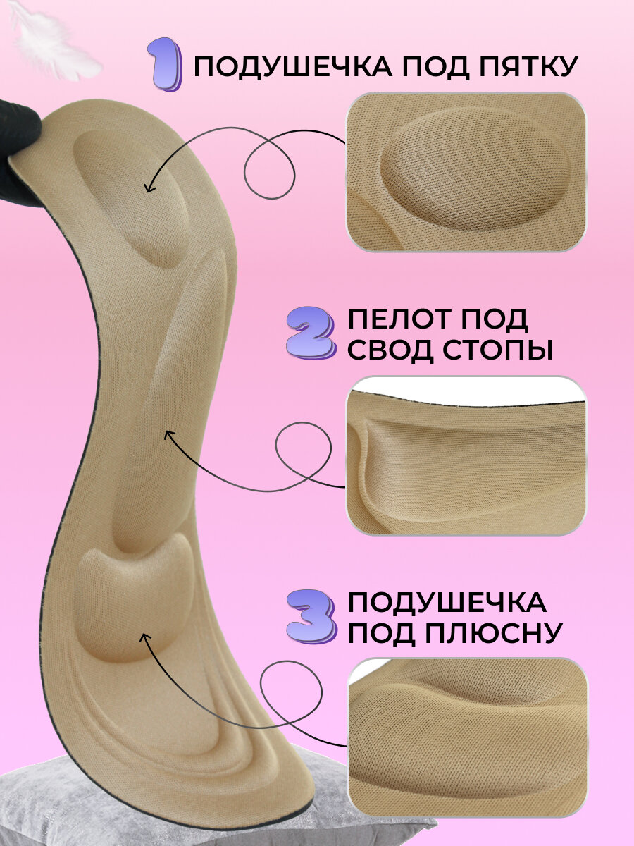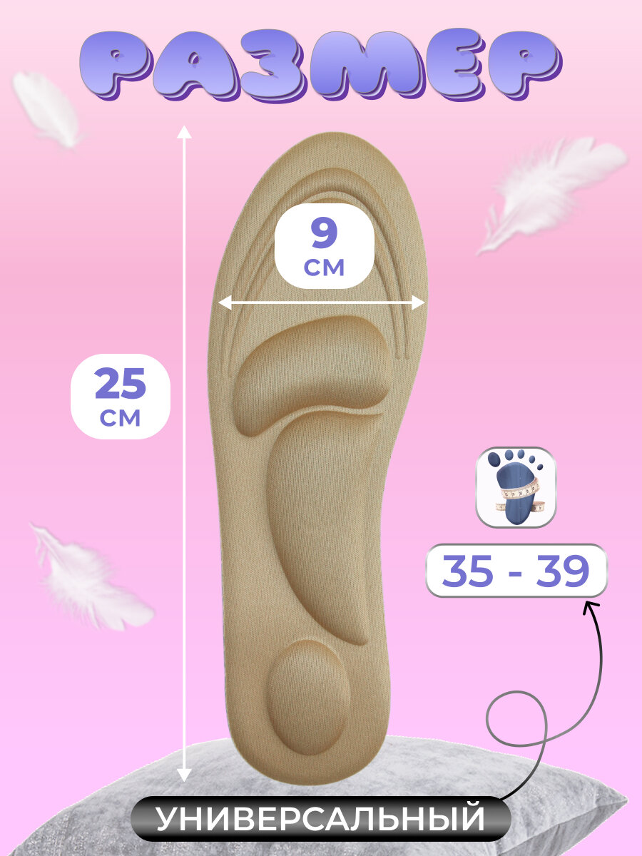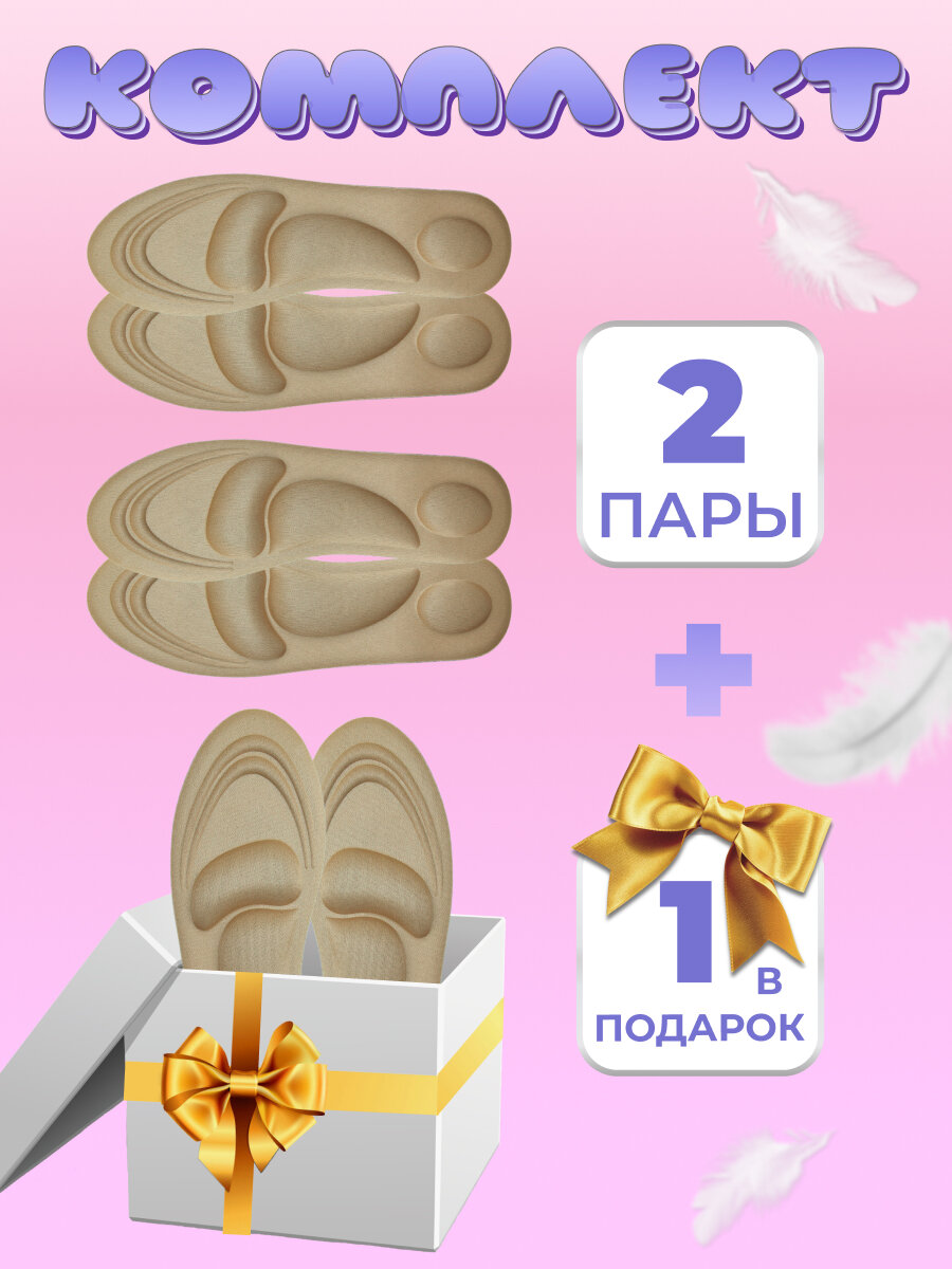 Купить Мягкие, амортизирующие, ортопедические, массажные стельки/ Размер 35-39/Набор 3 пары/Бежевые