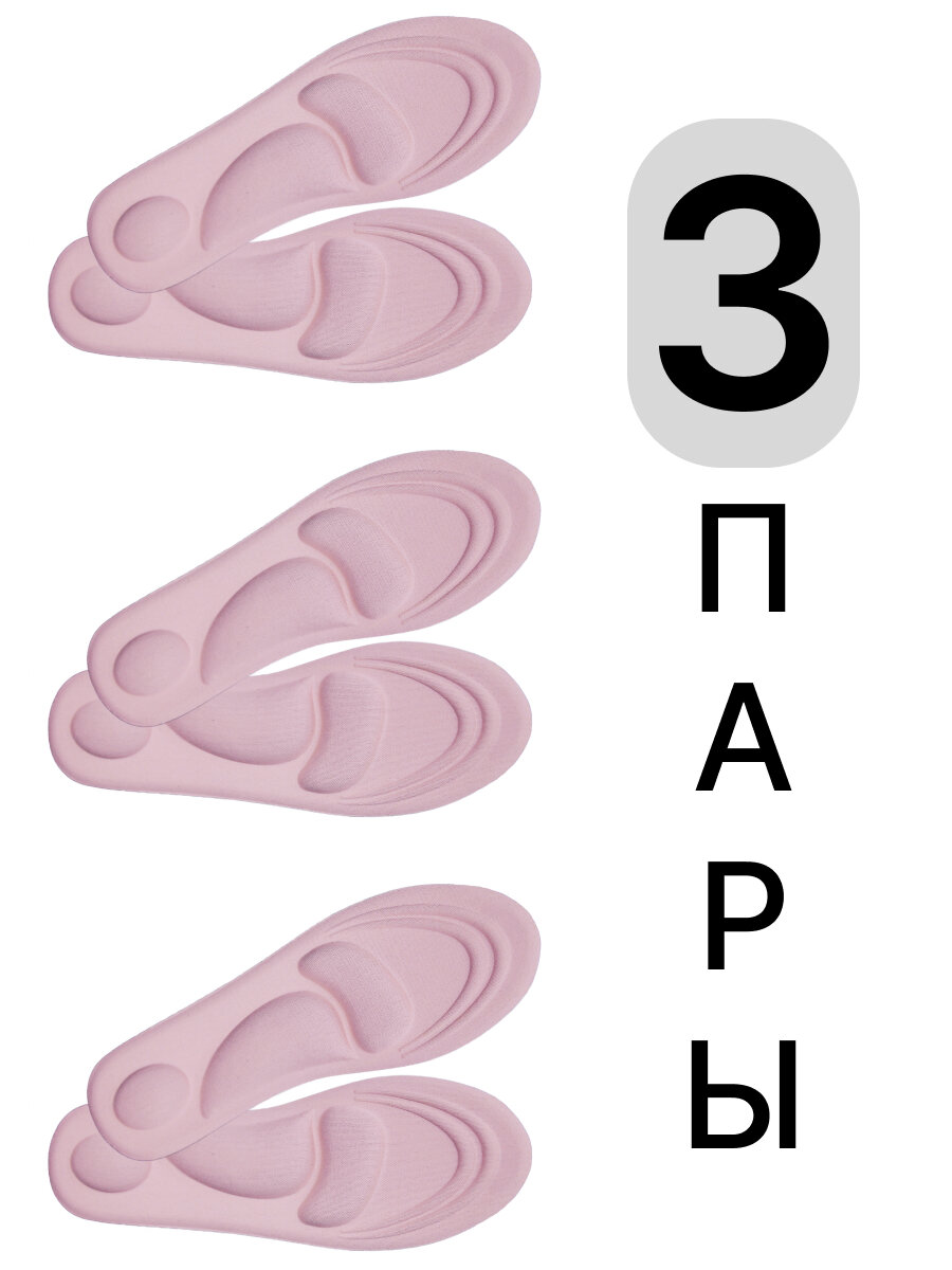 Купить Мягкие, амортизирующие, ортопедические, массажные стельки/ Размер 35-39/Набор 3 пары/Розовые