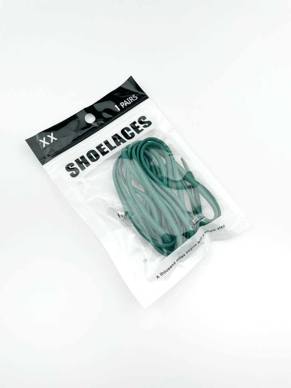 Шнурки для обуви эластичные круглые с фиксаторами зажимами рифлеными салатовые - 1 пара