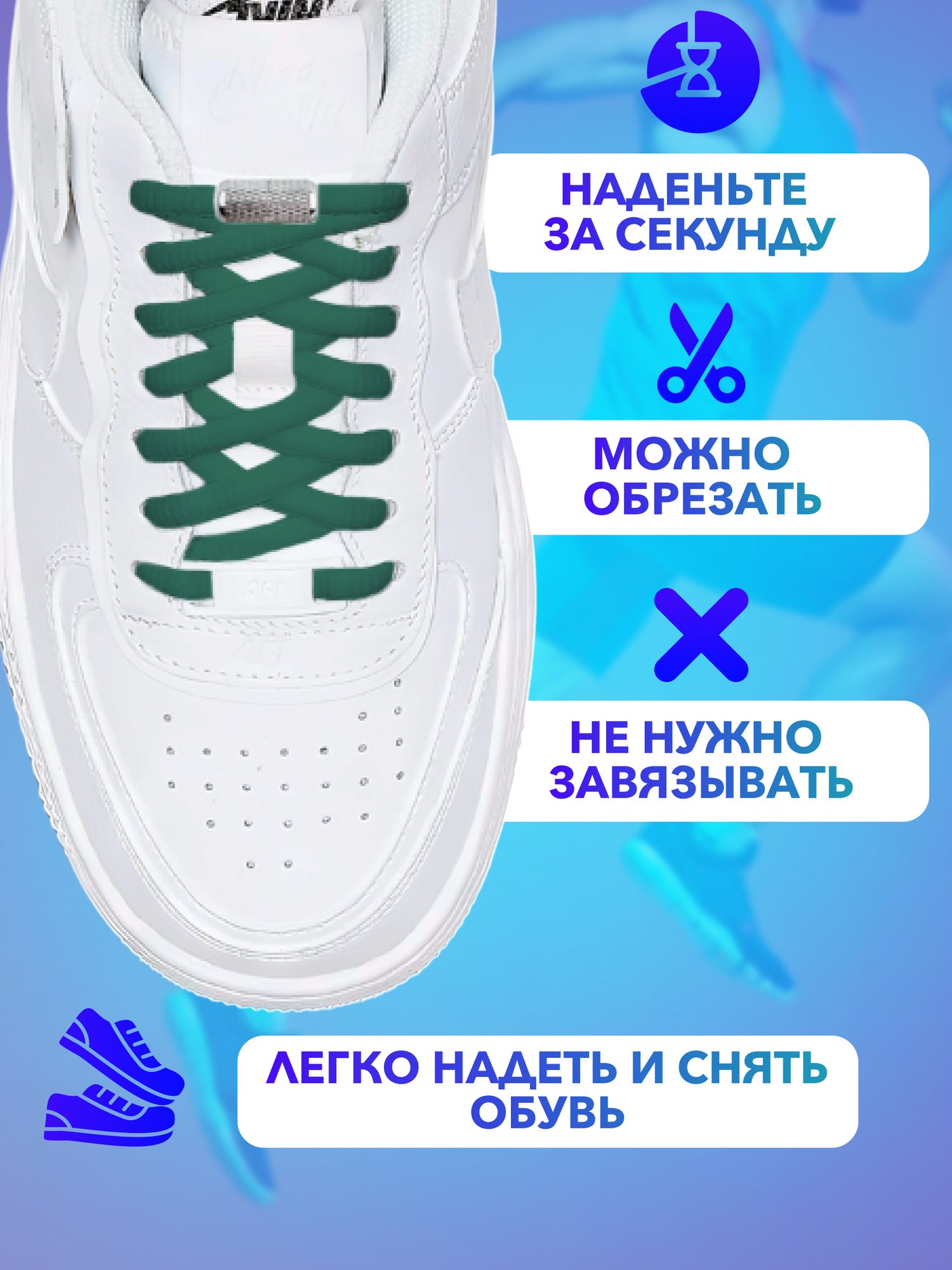 Ниже Вы можете прочитать отзывы на Шнурки для обуви эластичные круглые с фиксаторами зажимами рифлеными ярко-зеленые - 1 пара, ознакомится с подробными характеристиками, посмотреть интересные обзоры и фотографии на Шнурки для обуви эластичные круглые с фиксаторами зажимами рифлеными ярко-зеленые - 1 пара.