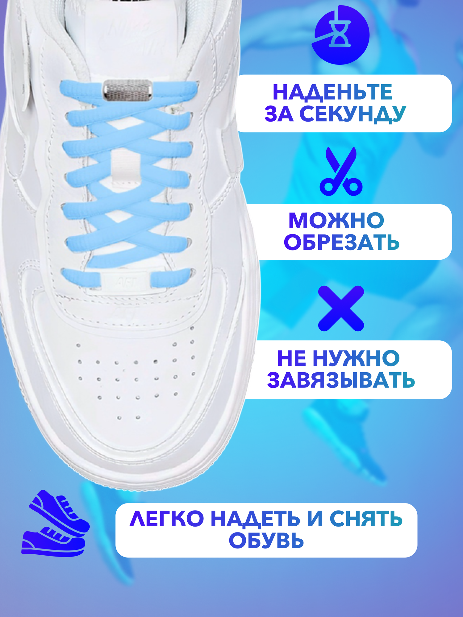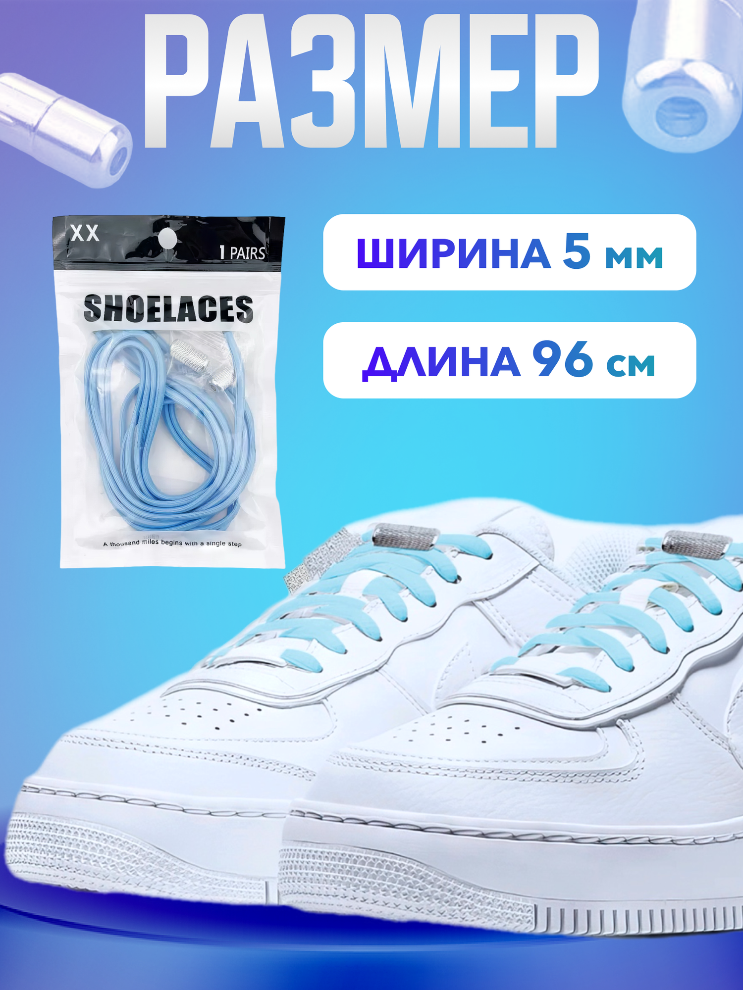 Купить Шнурки для обуви эластичные круглые с фиксаторами зажимами рифлеными голубые - 1 пара