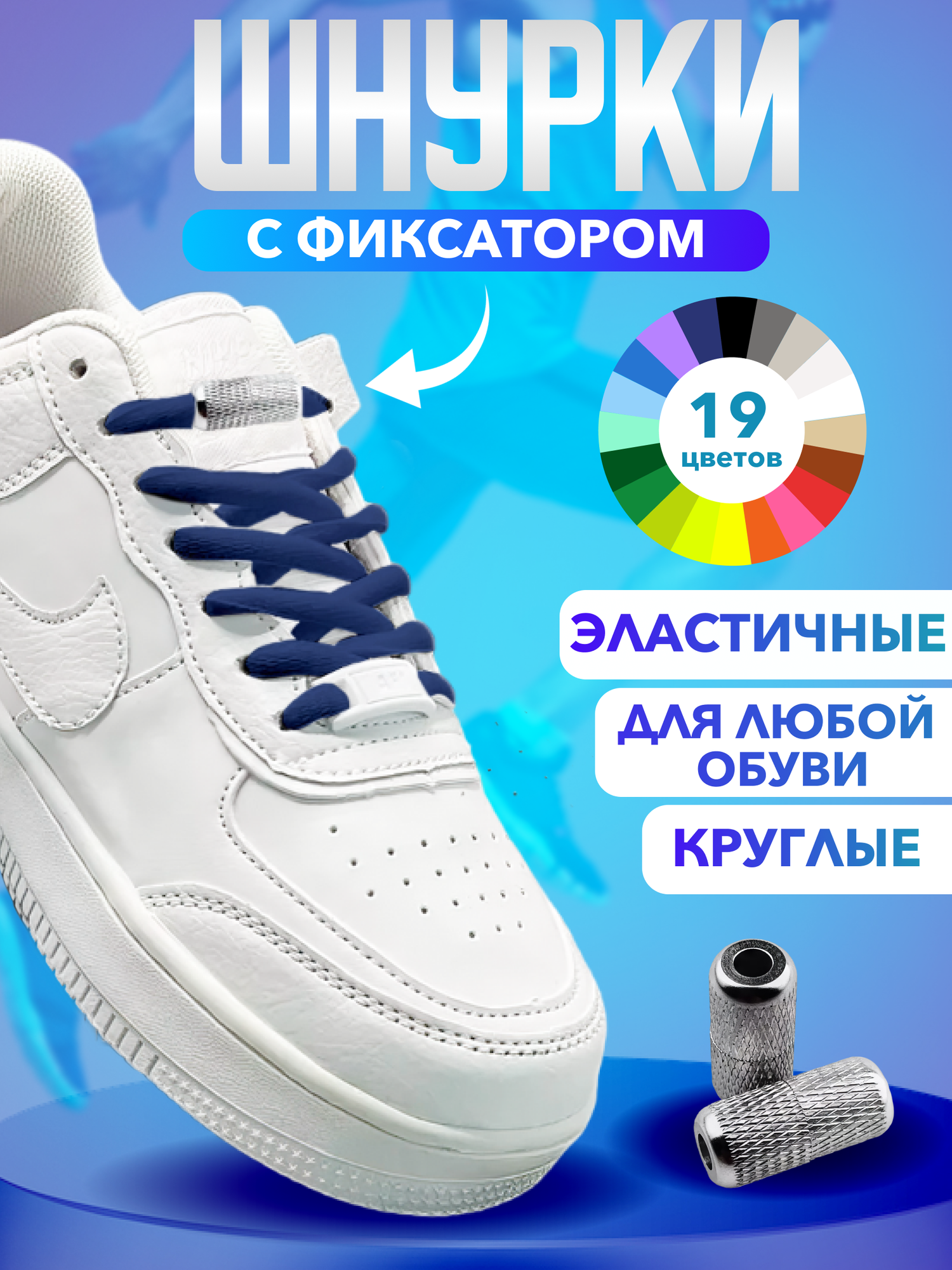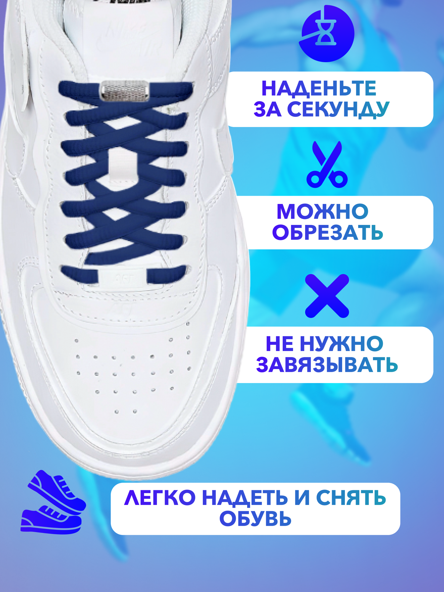 Купить Шнурки для обуви эластичные круглые с фиксаторами зажимами рифлеными синие - 1 пара