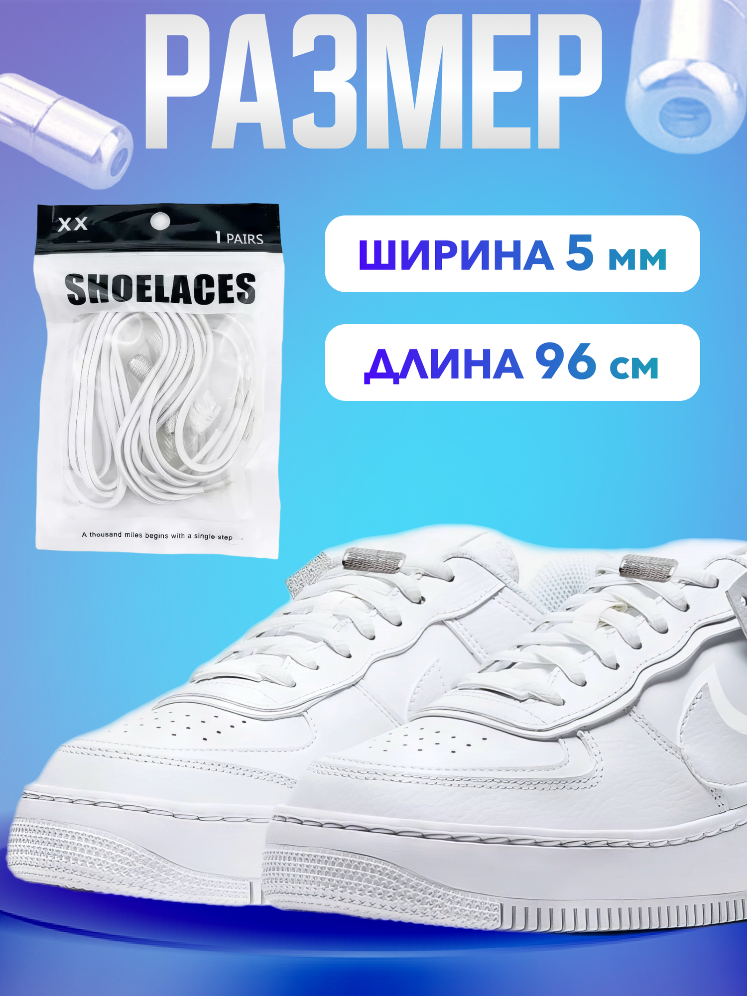 Купить Шнурки для обуви эластичные круглые с фиксаторами зажимами рифлеными белые - 1 пара