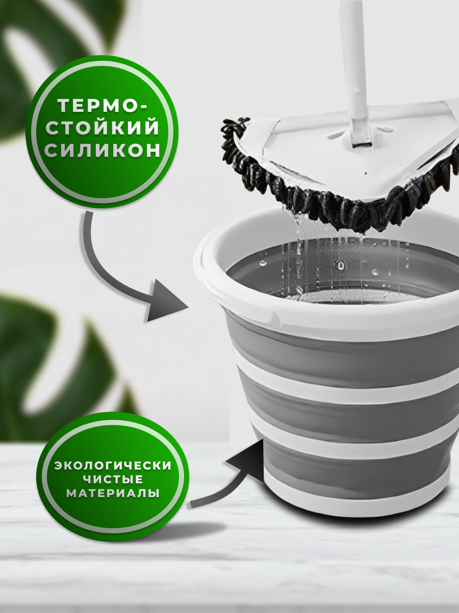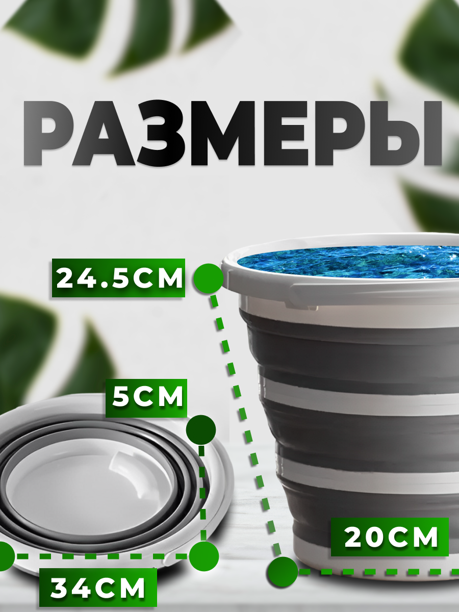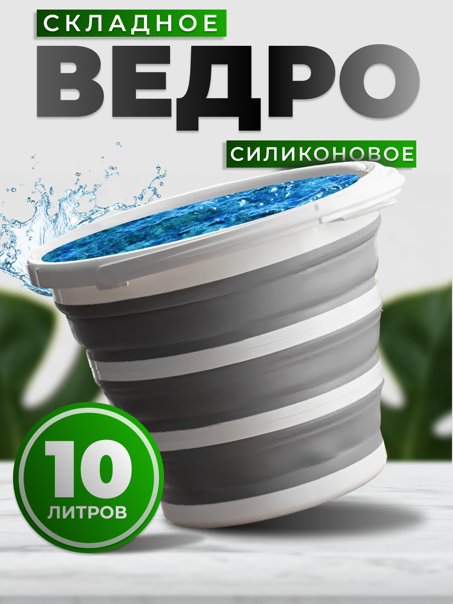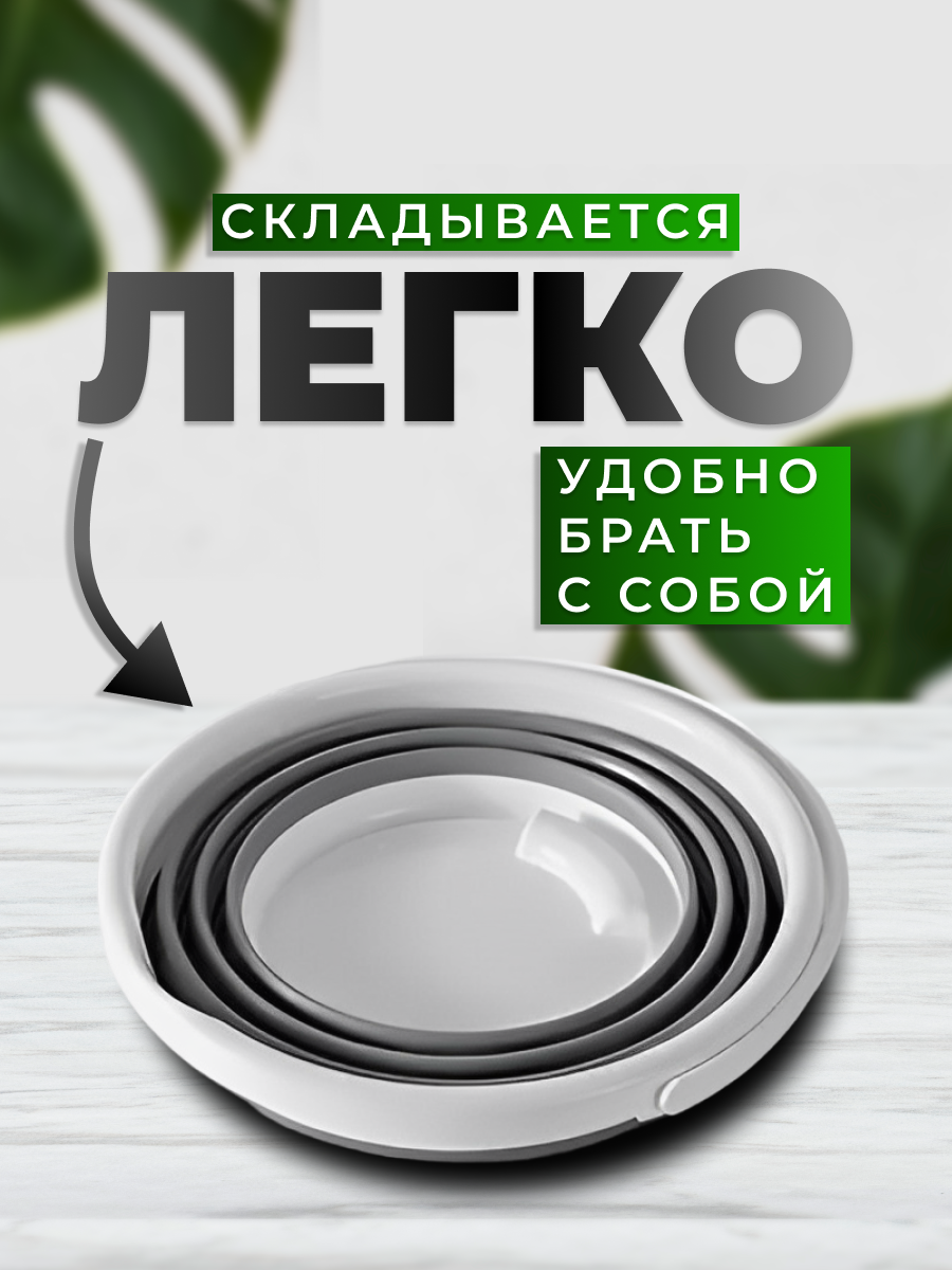 Силиконовое ведро складное 10 литров, круглое интересное: