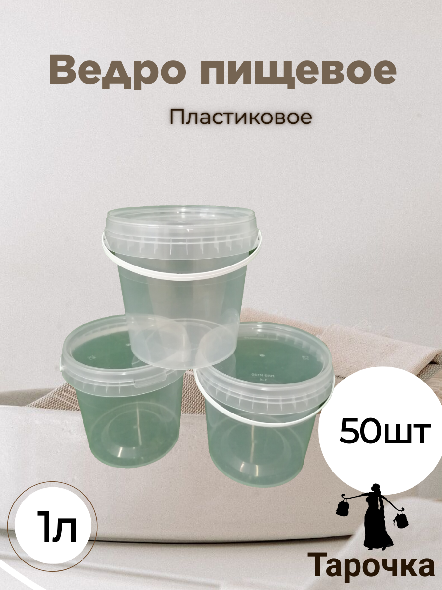 Ведро прозрачное, пищевое, 1л, набор 50шт интересное:
