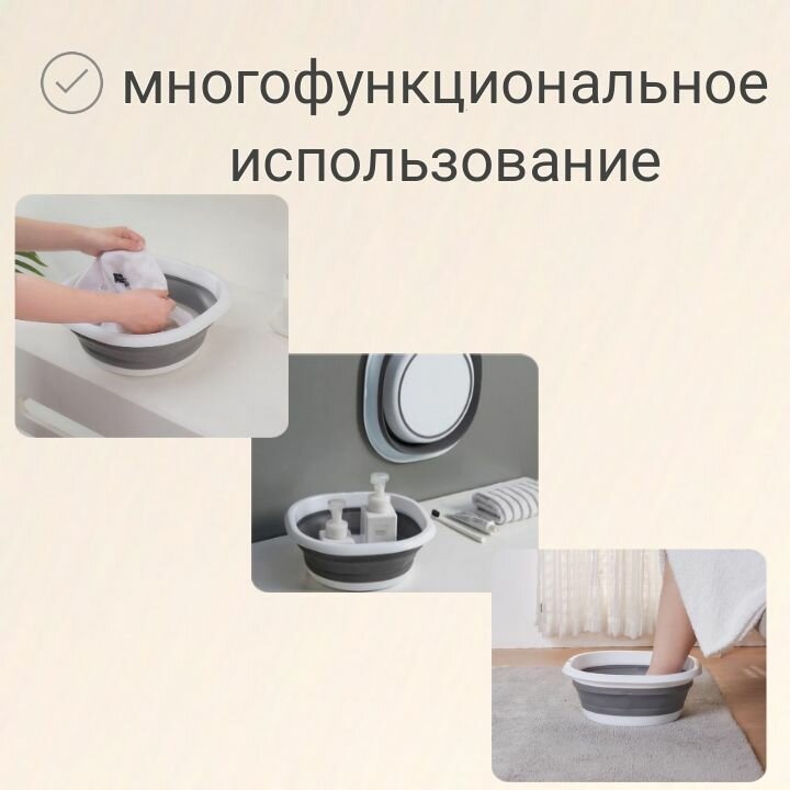Таз силиконовый хозяйственный складной для дома и дачи, набор из 3 тазов, серые интересное: