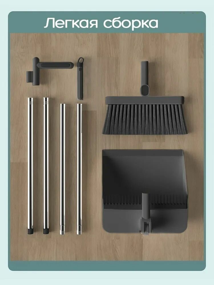 Совок и щетка для уборки, набор для уборки на длинной ручке, для пола, 2 предмета, серый