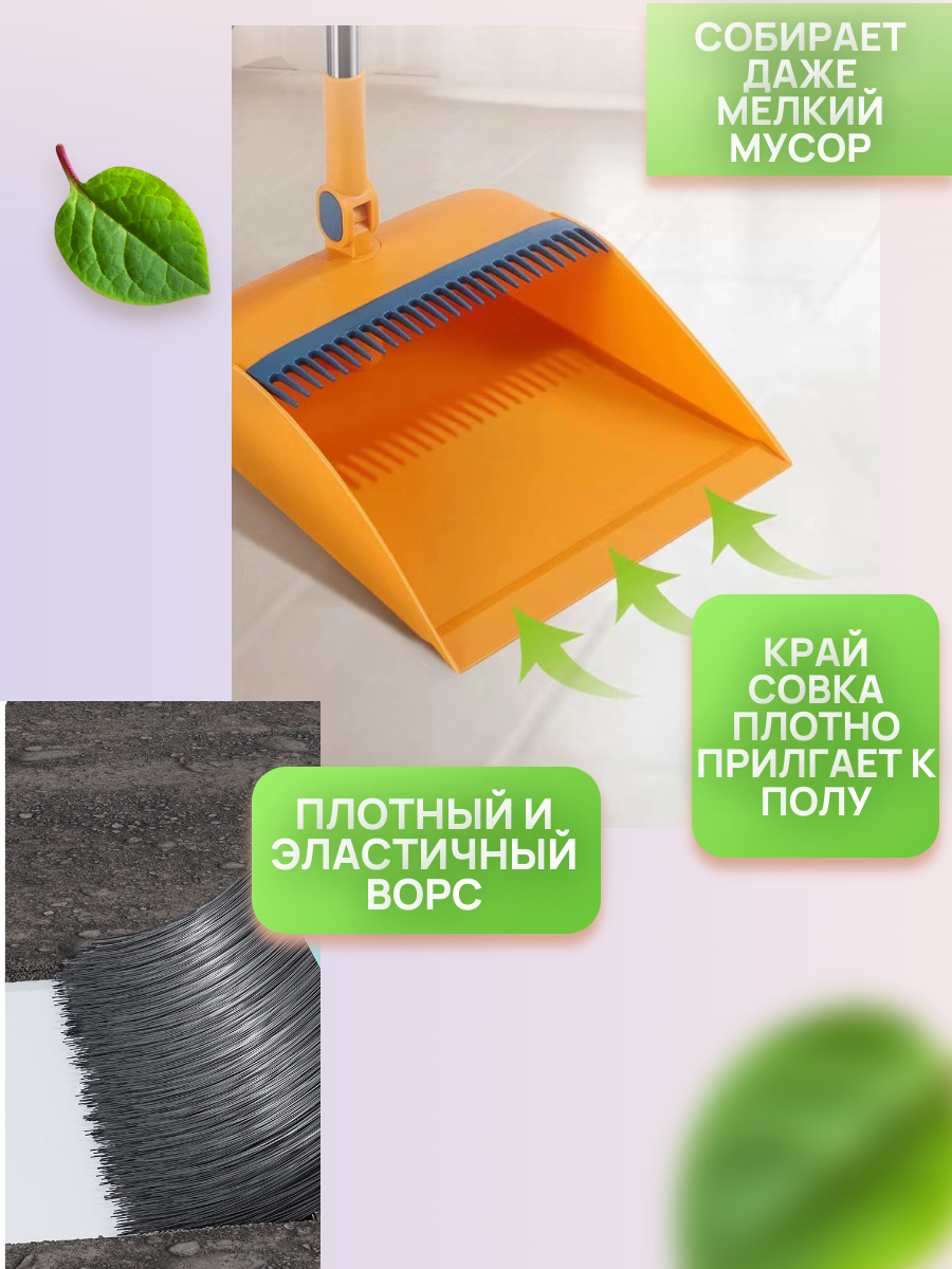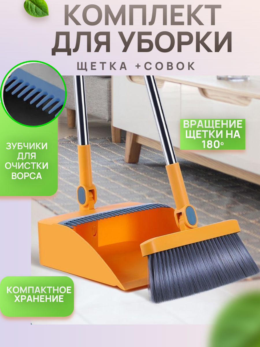 Совок и щетка для уборки, набор для уборки на длинной ручке, 2 предмета, оранжевый интересное: