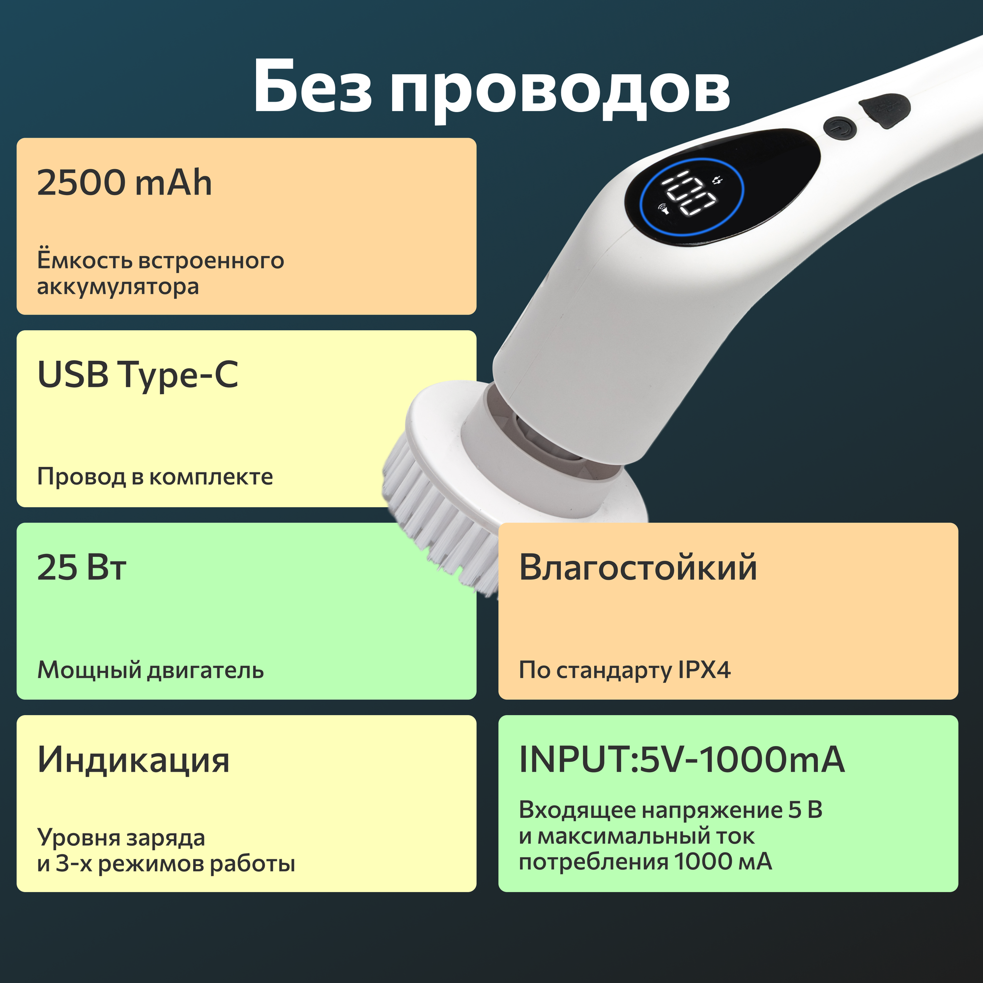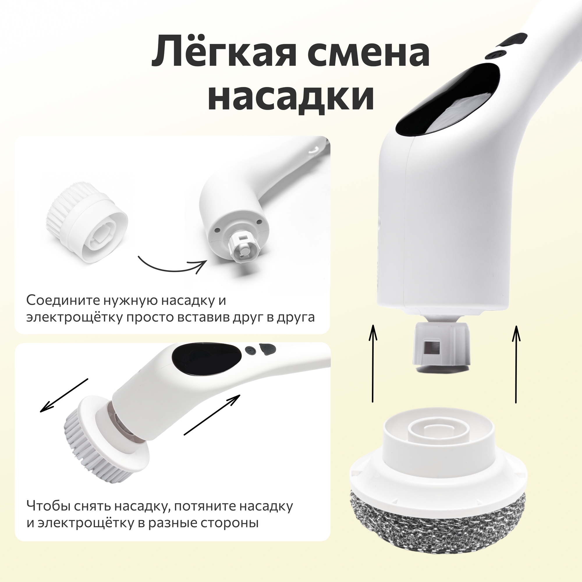 Электрическая щётка для уборки дома со сменными насадками, ручная беспроводная щетка для чистки ванной и кухни
