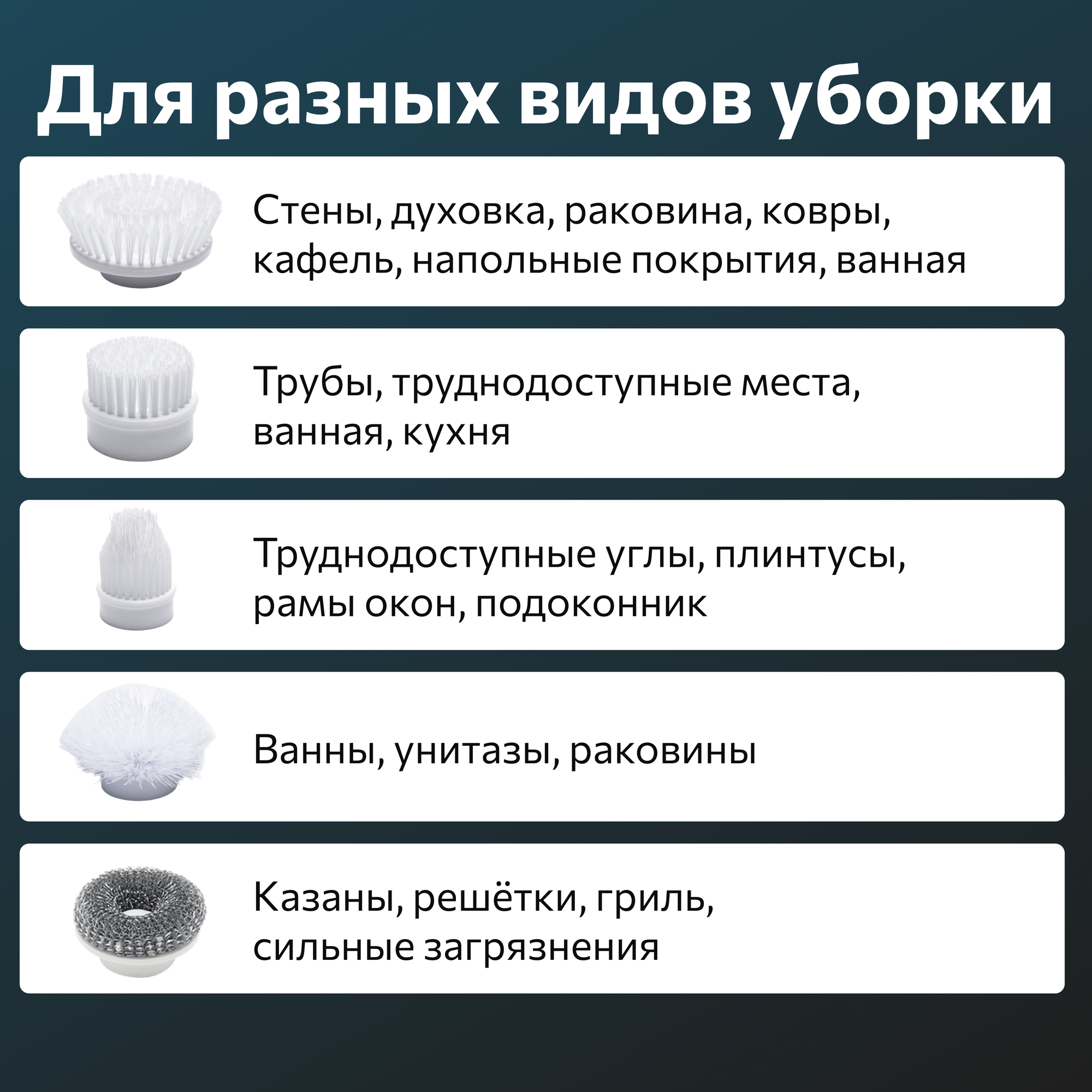 СохранитьЭлектрическая щетка для уборки с набором 9 насадок поможет с легкостью убраться дома. Щетка электрическая имеет универсальный держатель - длинная выдвижная ручка интересное:
