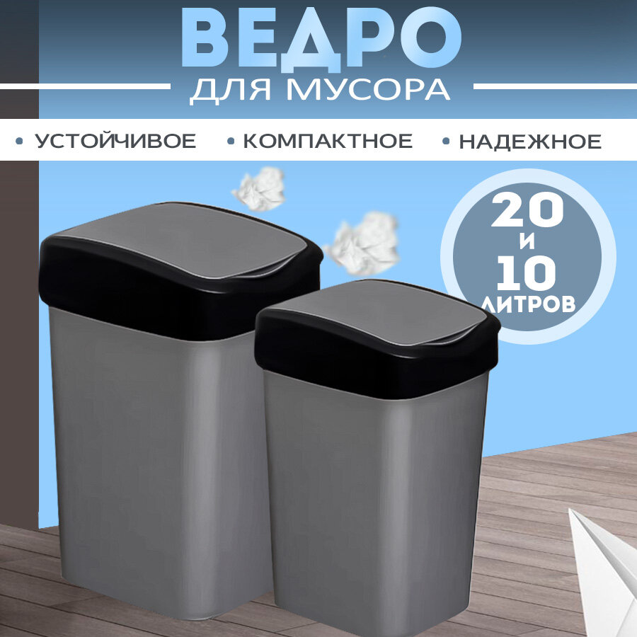 Мусорное ведро с подвижной крышкой Tandem, набор 10л+20л, серый металлик/черный интересное: