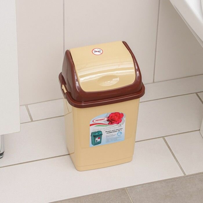 Купить Ведро для мусора Росспласт "Камелия", 4 л, коричнево-бежевое (1593579)
