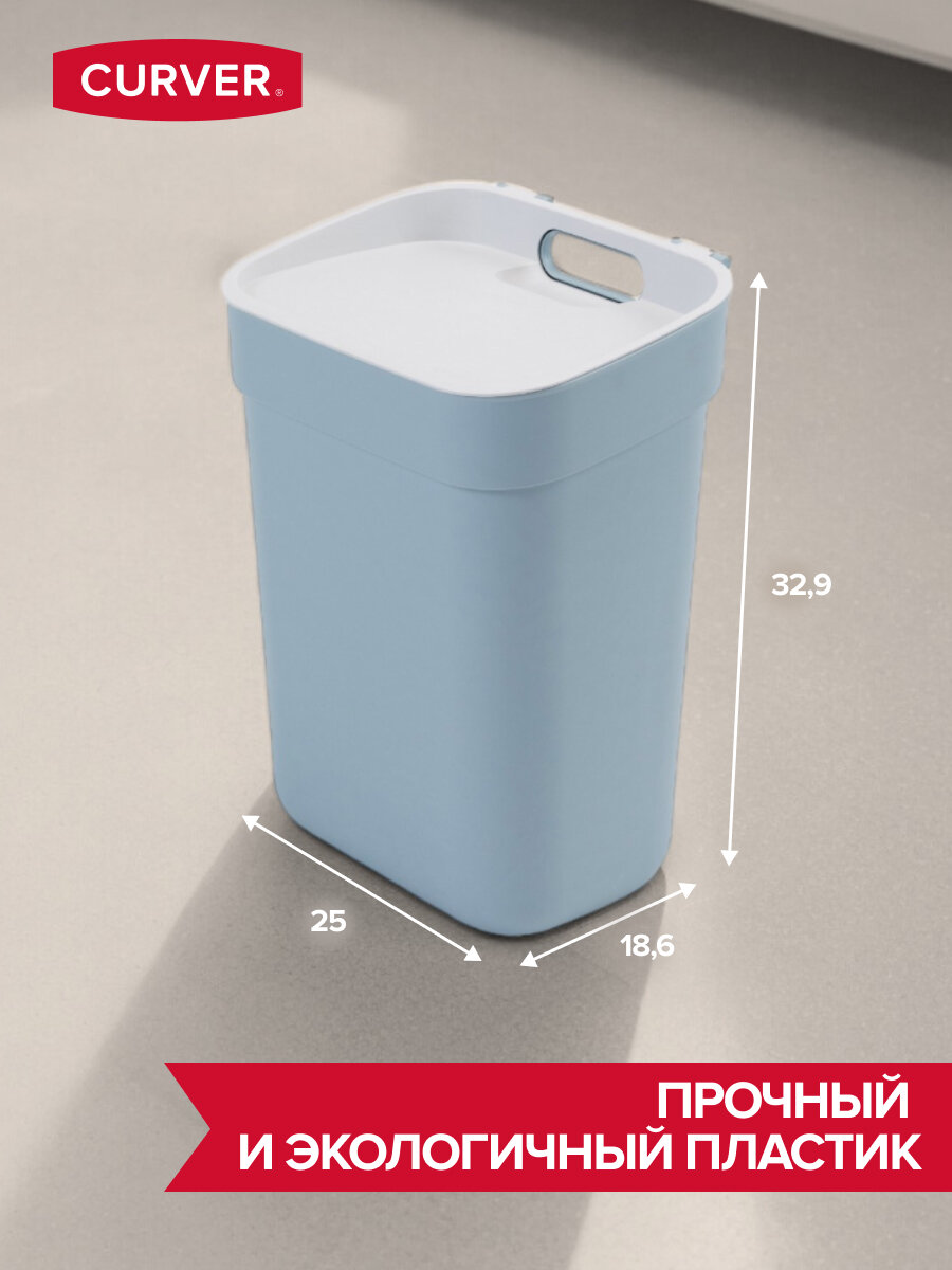 Контейнер для мусора с крышкой для кухни Curver Ready to collect 10 литров, 2101 голубой/св. серый