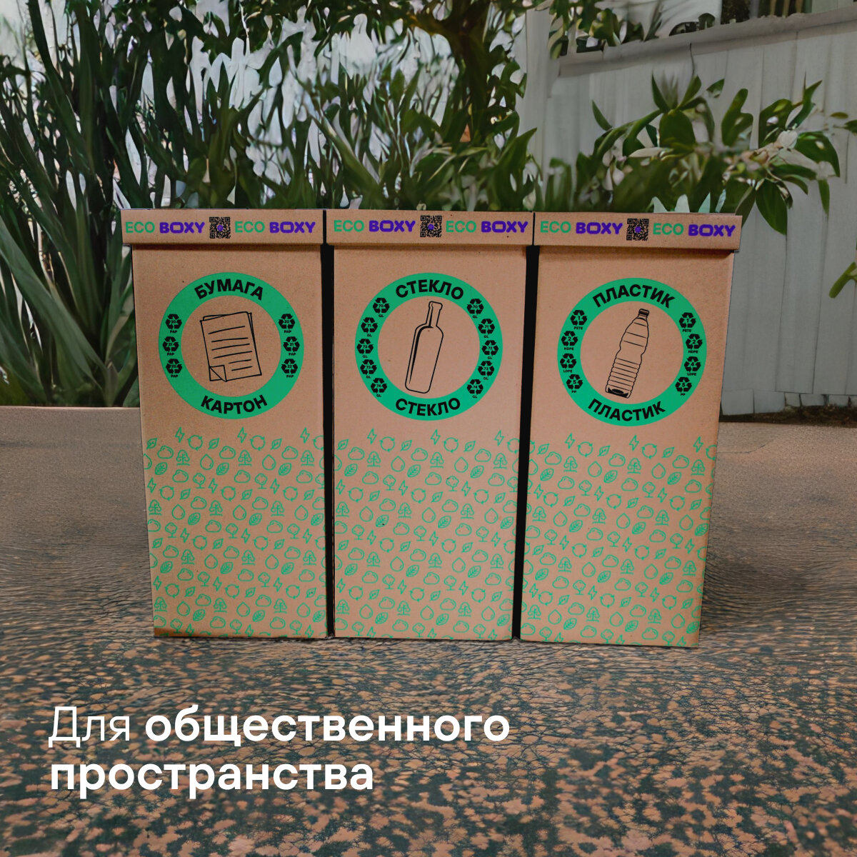 Набор контейнеров для раздельного сбора мусора BOXY экосейф, 58 л, В упаковке 3 шт: бумага, пластик, стекло. интересное:
