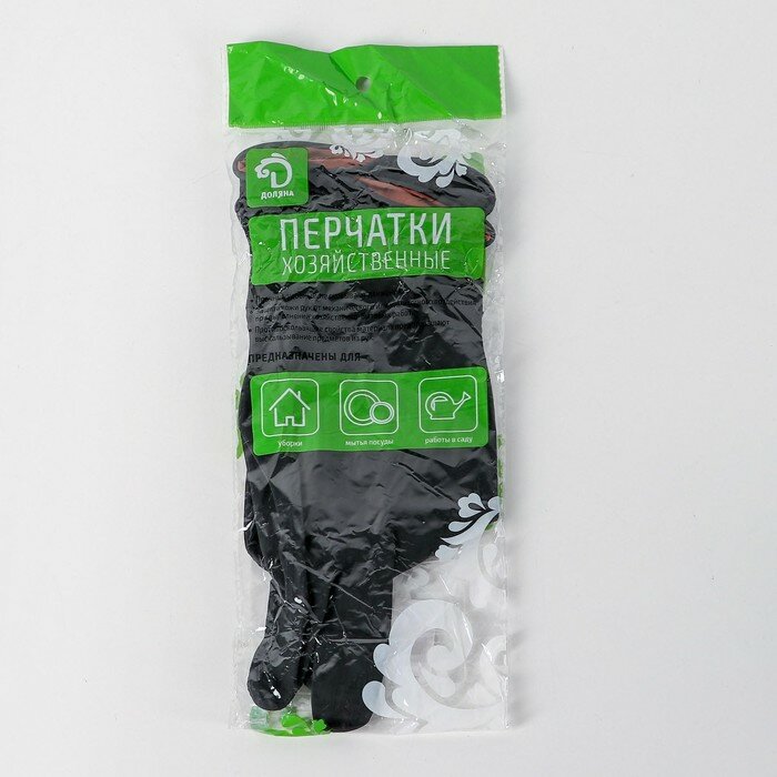 Перчатки хозяйственные Доляна, латексные, 50 гр, размер S, цвет чёрный