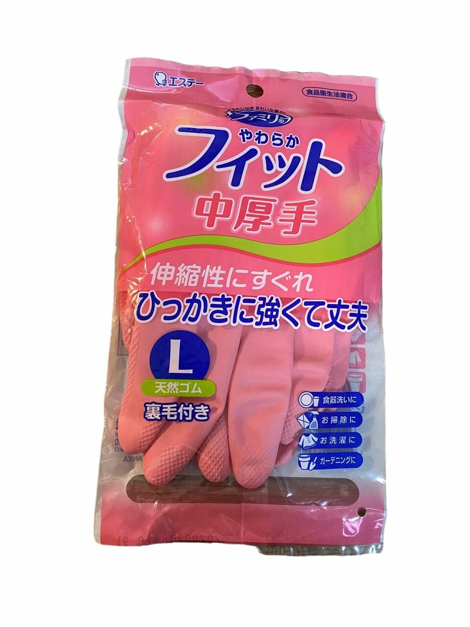 Перчатки для уборки каучуковые ST Family, средней толщины с внутренним напылением, Размер L, Япония