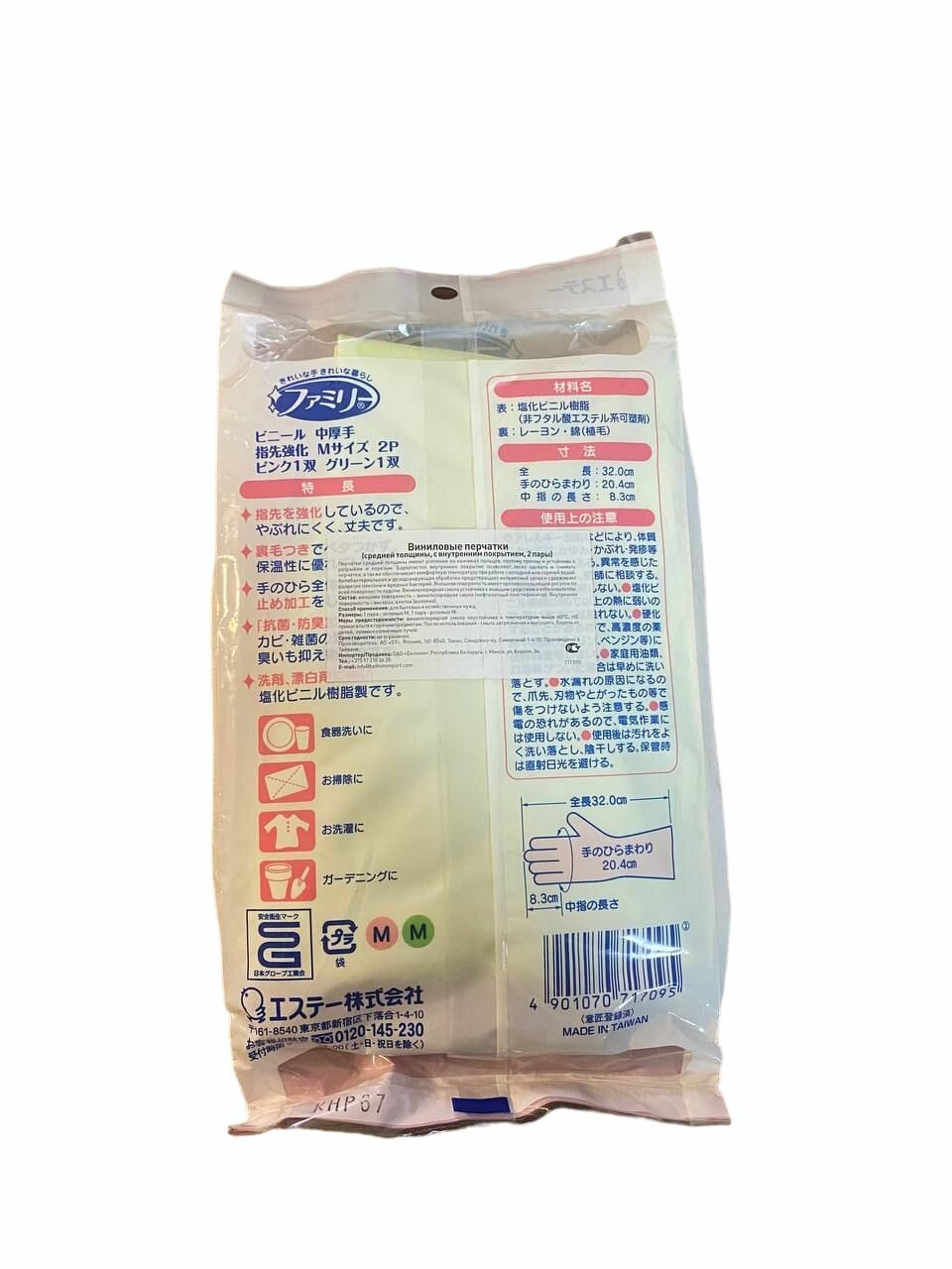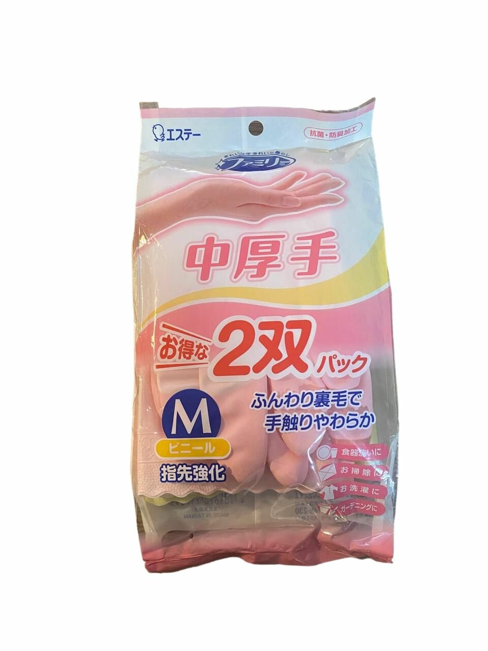 Перчатки хозяйственные каучуковые ST Family, средней толщины, с внутренним покрытием, розовый. Размер M, Япония