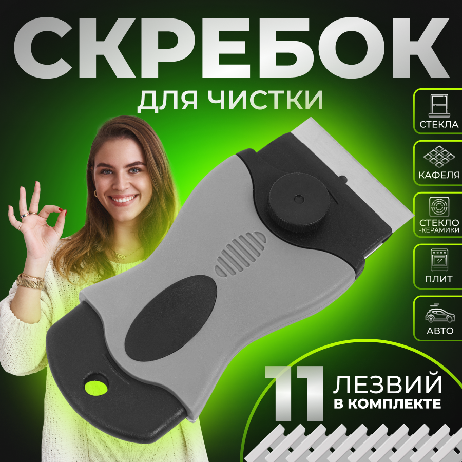 Скребок для стеклокерамических плит индукционных варочных поверхностей окон стекла кафельной плитки средство от наклеек тонировки интересное: